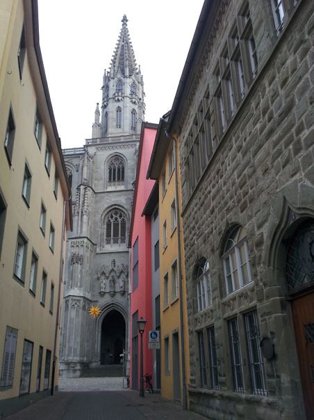 Saksan puolella Konstanzessa talot kasvavat korkeammalle.