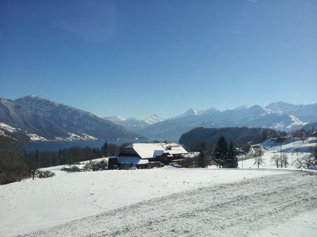 Tässä jo ensimakua alppimaisemista. Olemme Thunin lähellä.