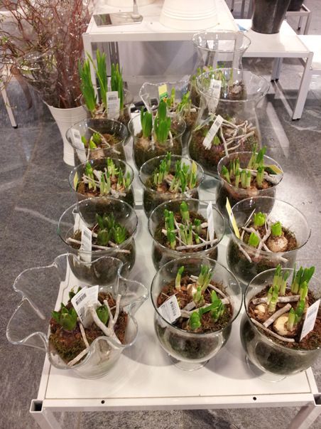 Sipulikukat heräilevät lasiastioissa.