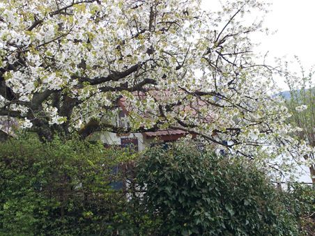 Valkoisen puun kuvasin Stein am Rheinin kaupungissa. Tarkkasilmainen näkee kuvassa myös pilkahduksen Reinistä.