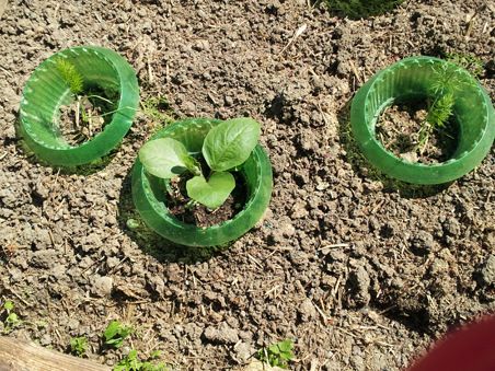 Puutarhan kasvit eivät kukit ja tuota, jos niihin iskevät etanat. Muoviset kaulukset tiputtavat etanat kyydistä.