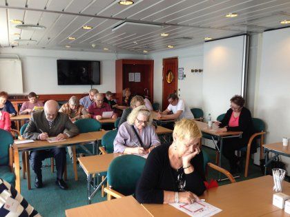 ET- ja ET Ristikot-lehtien ristikkoristeilyllä Itämeren nopein ristikonratkoja -kisan alkueriin osallistui kolmisenkymmentä innokasta ristikkoharrastajaa. Reija Marjoluodon laatiman alkueräristikon ratkaisi ensimmäisenä Margareetta Kärkkäinen.