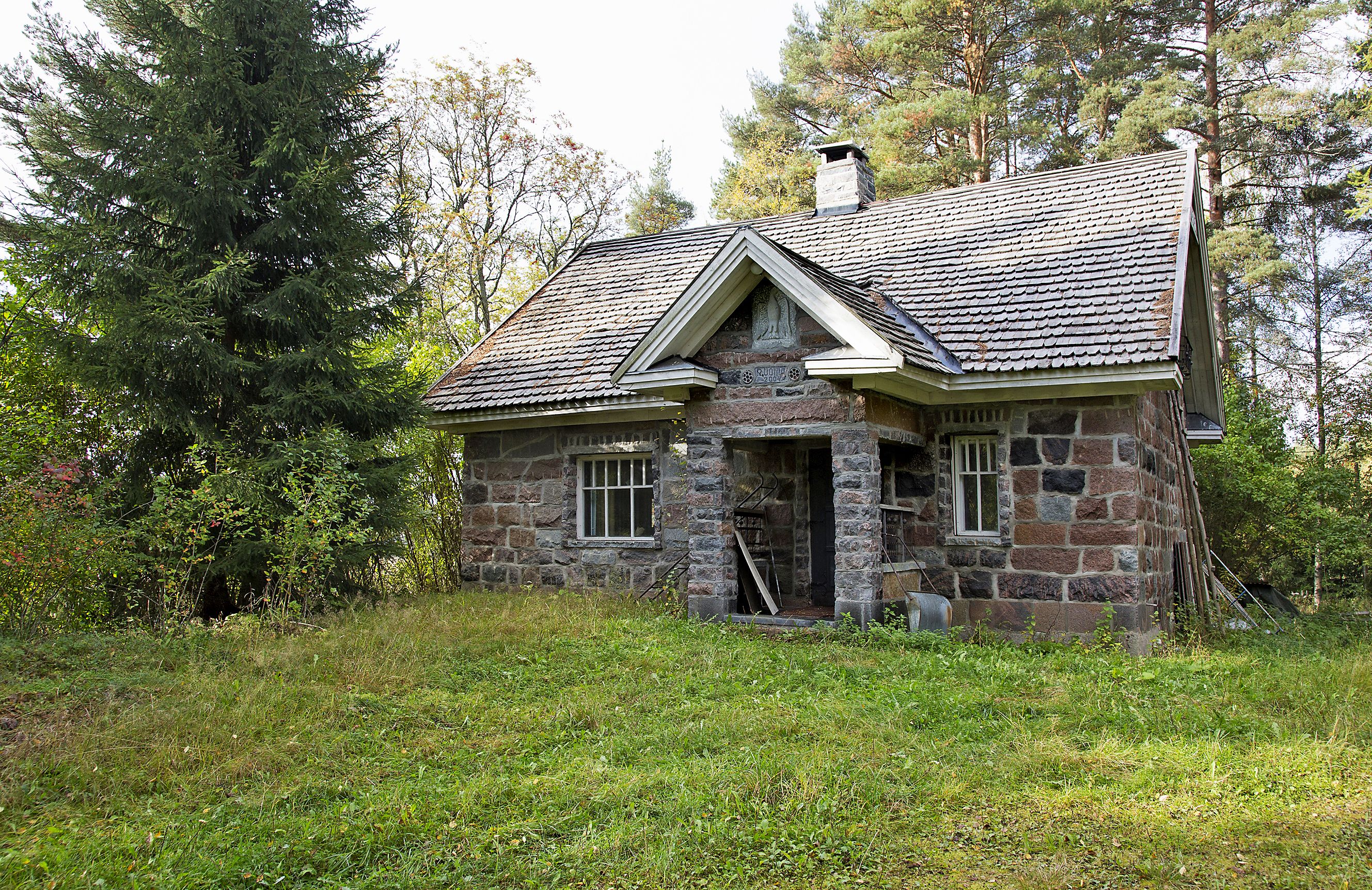 Tontin laidalla seisoo kivilohkarein verhoiltu kaksikerroksinen talonjärkäle. Paanukatto on tervasta kauniin ruskea, tuuli on koristellut sen männynhavuilla.