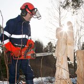 – Jokaisen kiven olen itse hakannut lekalla ja moskalla, mies toteaa ohimennen. Moukari ja talttavasara eivät ole päässeet helpolla.