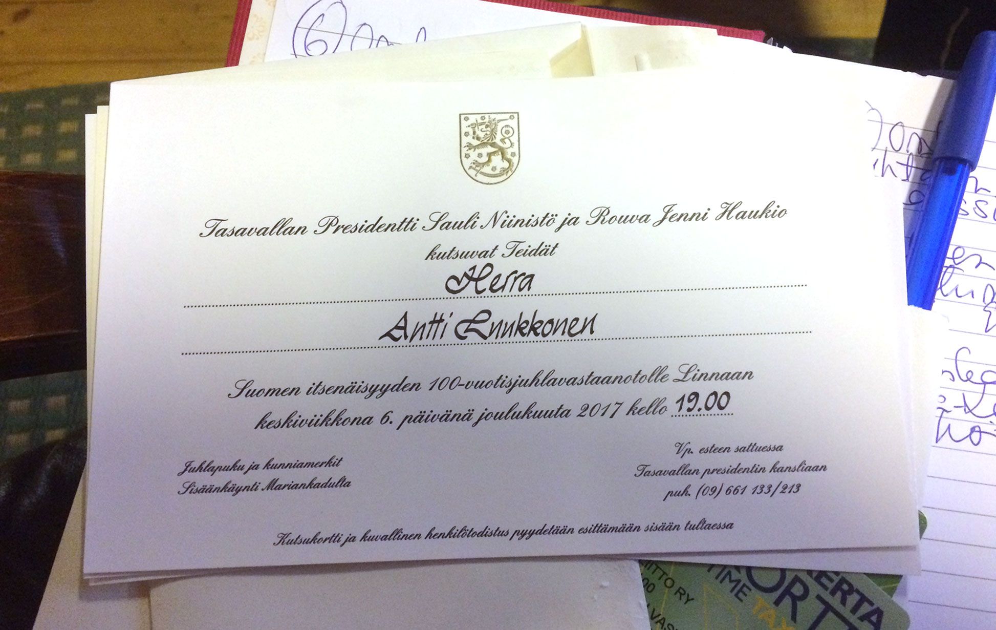 Antti Luukkonen kertoo yllättyneensä, kun presidentiltä tuli postia muutama viikko takaperin. Isä ja tytär tulivat ystävän 80-vuotistispäiviltä kotiin, ja tytär otti postit laatikosta. Siellä oli virallisen näköinen kuori, jossa luki "tasavallan presidentiltä".