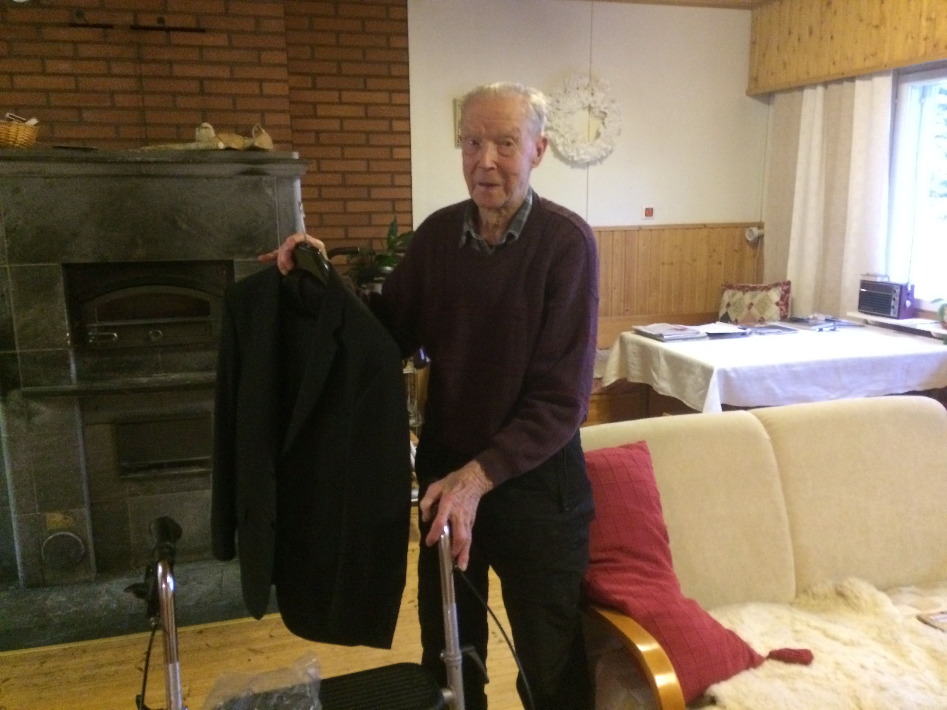 – Minusta se oli vähän turhaa, mutta onpa ainakin hyvin istuva. Entinen jäi isoksi, kun tässä iässä vähän kuihtuu ja pikkuisen laihtuu. Puku huljuu päällä.