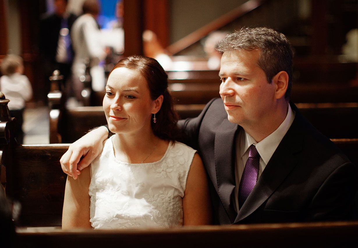 Halusimme häät ilman hössötystä, mutta kivassa paikassa. Pyhän Laurin kirkko on juhlava ja tunnelmallinen kirkko. Häämarssimme oli Toivo Kuulan Häämarssi. Se ei ollut ykkösvaihtoehtomme, mutta emme halunneet myöhäisempää aikaa. Vuoromme oli varttia vaille yksitoista illalla. Alussa jännitti hieman, mutta pappi Satu Huttusen lämmin puhe oli niin kannustava, että jännitys katosi ja vaihtui liikutukseen. Enää ei tarvitse salailla, vaan on aika kertoa sukulaisillekin, että menimme naimisiin.