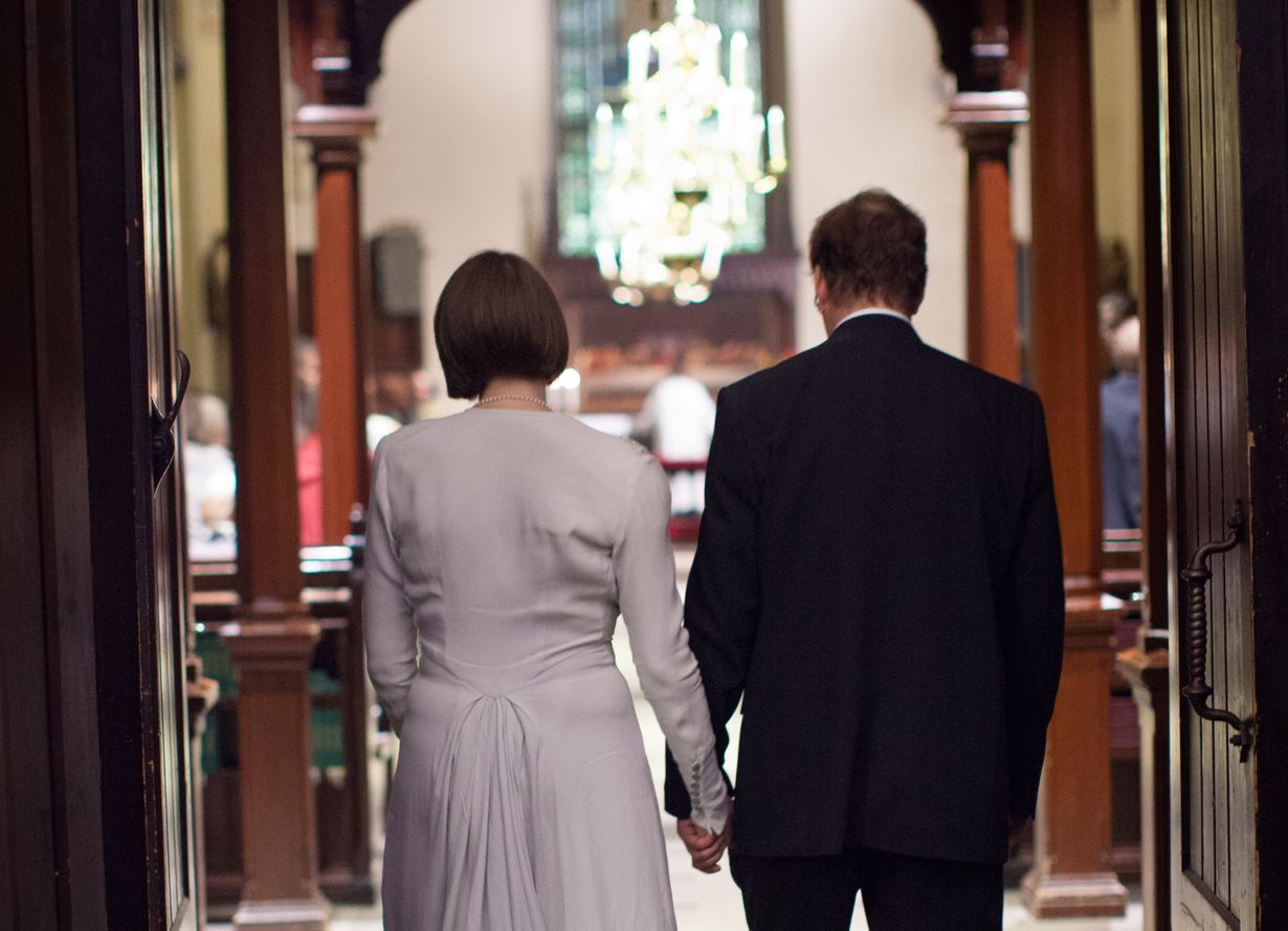 Kirkonpenkeillä osa pyyhkii kyyneleitä. Edempänä istuu niin pariskunnan kutsumia vieraita kuin tuntemattomia, häämarsseja kuuntelemaan saapuneita ihmisiä. Kauimmaisissa penkeissä odottavat tämän illan aikana avioituvat parit.
