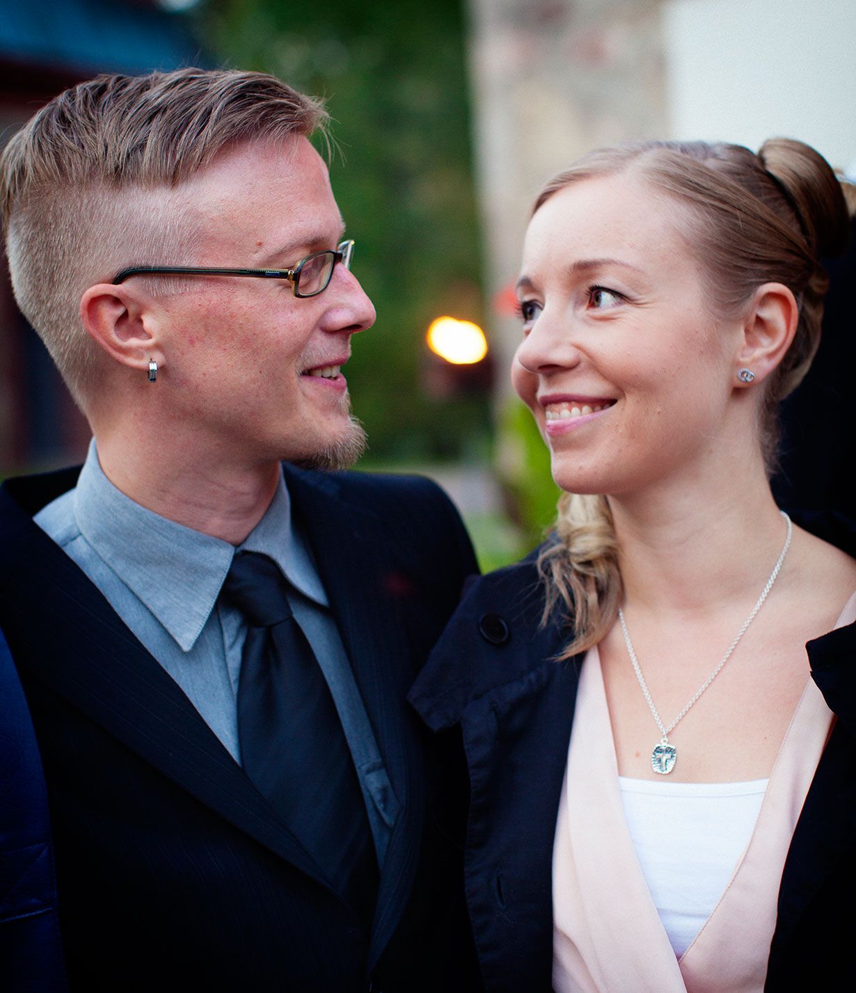 "Olemme olleet yhdessä noin puolitoista vuotta. Tapasimme internetin keskustelupalstalla, jossa vaihdoimme ajatuksia nimimerkkien takaa noin puoli vuotta, ennen kuin tapasimme livenä. Avioliitto on ollut meillä puheissa jo hyvin varhaisesta vaiheesta alkaen. Meitä yhdistävät yhteinen arvomaailma ja rakkauden lisäksi ystävyys. Tämä tuntui helpoimmalta tavalta mennä naimisiin ilman suurta stressiä.