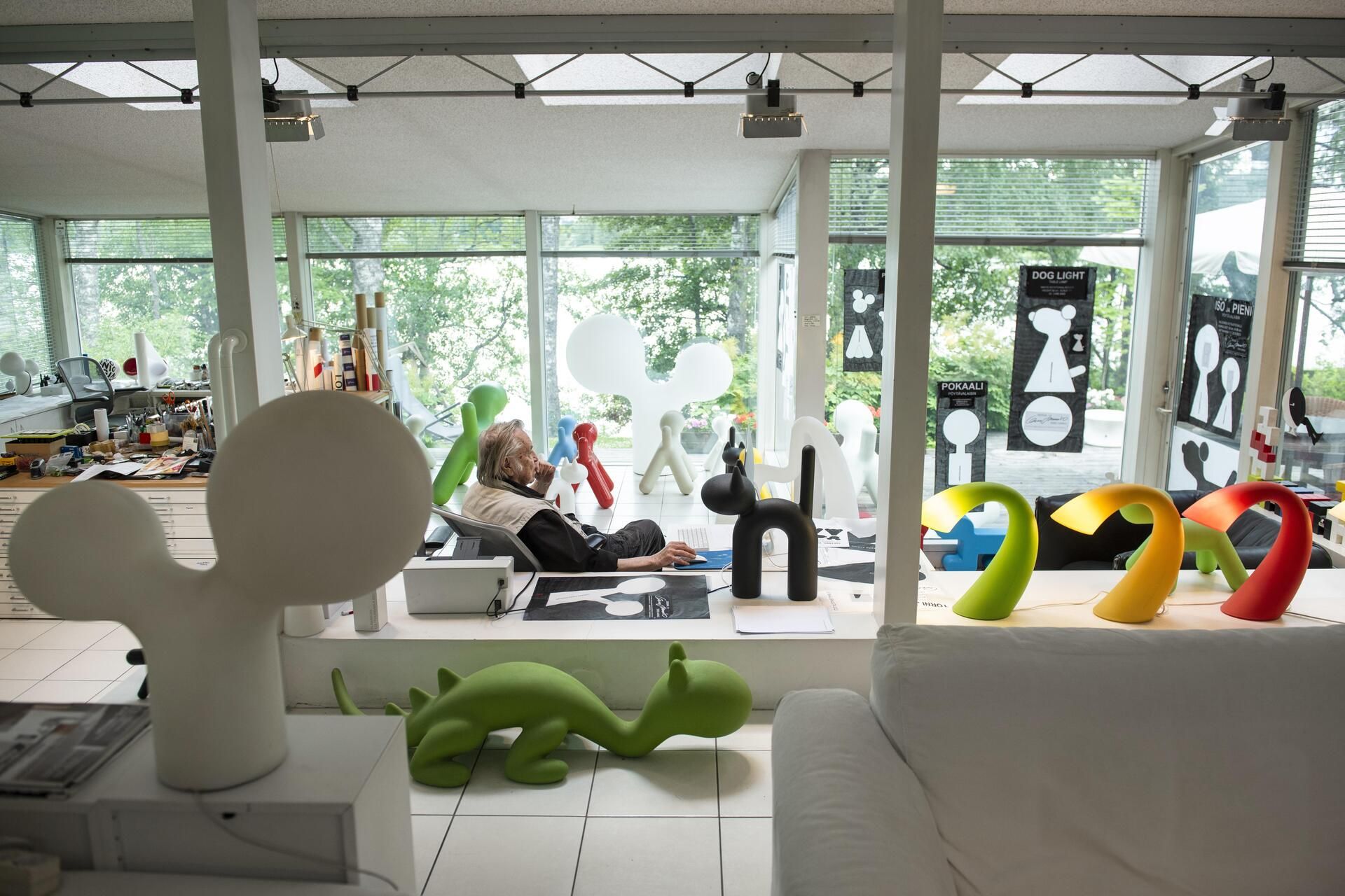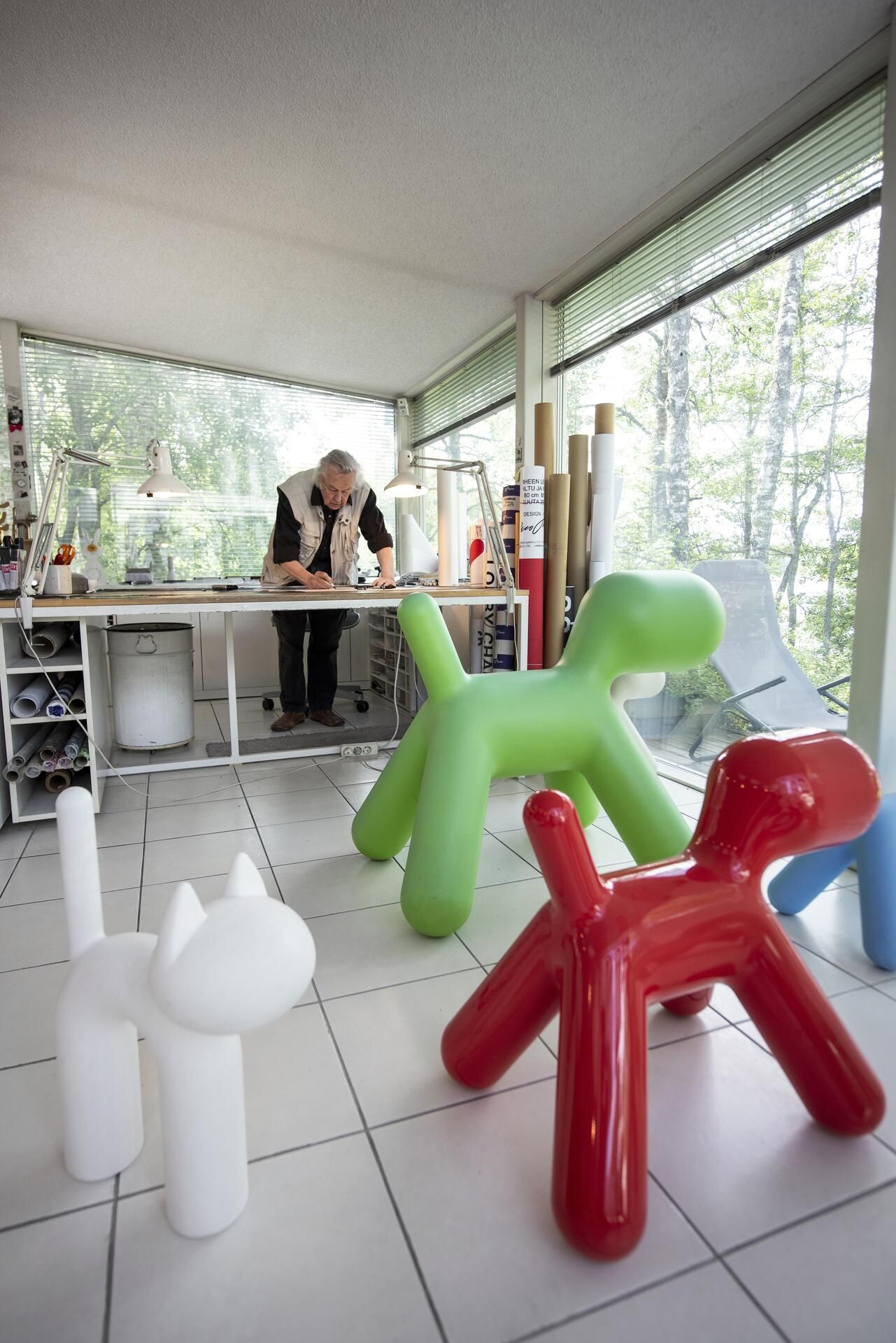 Eero Aarnio ei kestä olla hissuksiin vaan haluaa keksiä uusia esineitä ja tehdä töitä joka päivä. – Totta hitossa yhä innostun. Idea tulee kuin nälkä, aina uudelleen.