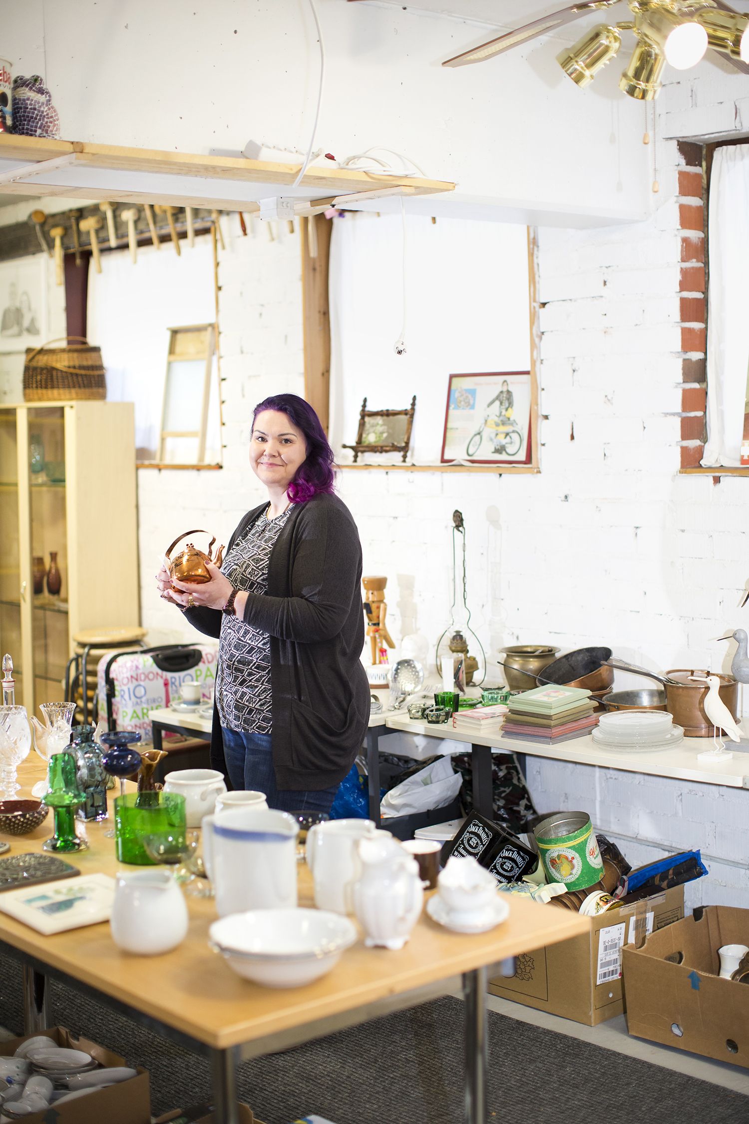 Minä työskentelin elektroniikka-asentajana, ja Aki teki metallitöitä. Kun olimme asuneet Salossa vuoden, Akin isä kuoli äkillisesti. Hän oli toivonut, että joku jatkaisi hänen 19 vuotta toiminutta huutokauppayritystään Hirvaskankaalla. Otimme haasteen vastaan, vaikka minä en tunnistanut edes Arabian maitokannua.
