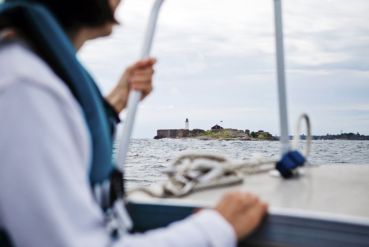 Veneilijöiden säätiedotus lupaa navakkaa tuulta ja vesisadetta. Antti Voipio suuntaa Ella-veneensä kokan kohti Gustavsvärnin eli ”Gustun” majakkasaarta kolmen kilometrin päässä Hangon Itäsatamasta.