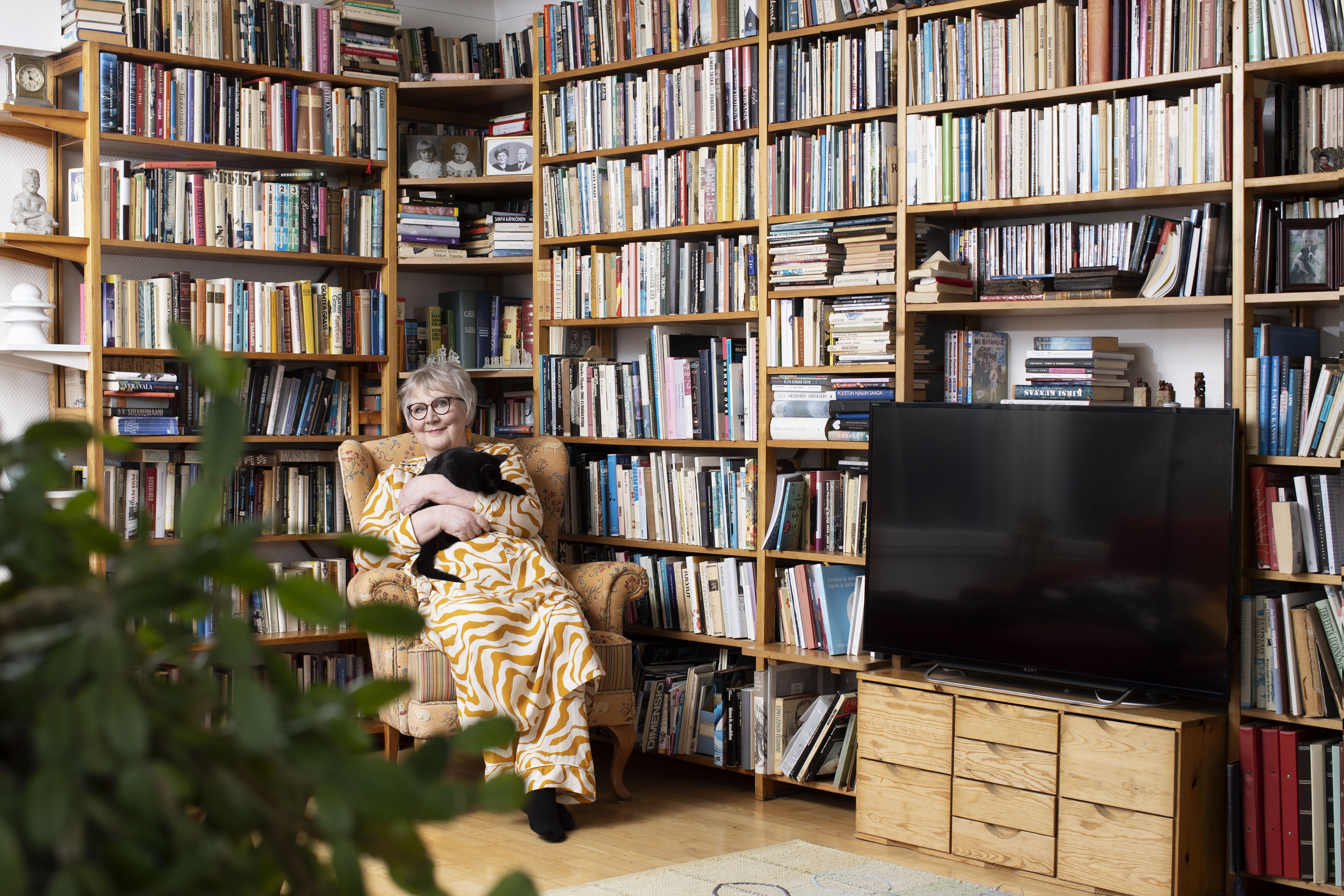 Kirjailija Anneli Kanto, 71, on aloittanut aamun nojatuolissa kupilla kahvia ja voileivällä.