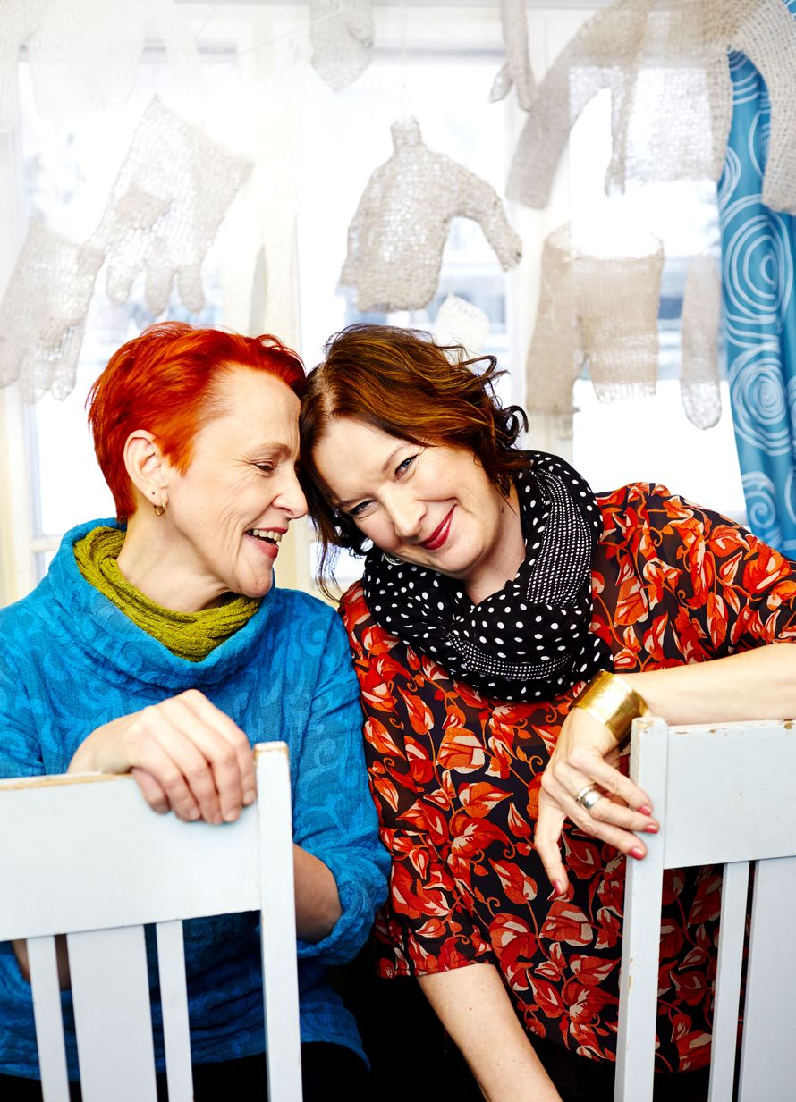 – Toinen on kypsä ja toinen ylikypsä, kuvaa hyvin meitä, kirjailija Katri Tapola nauraa.