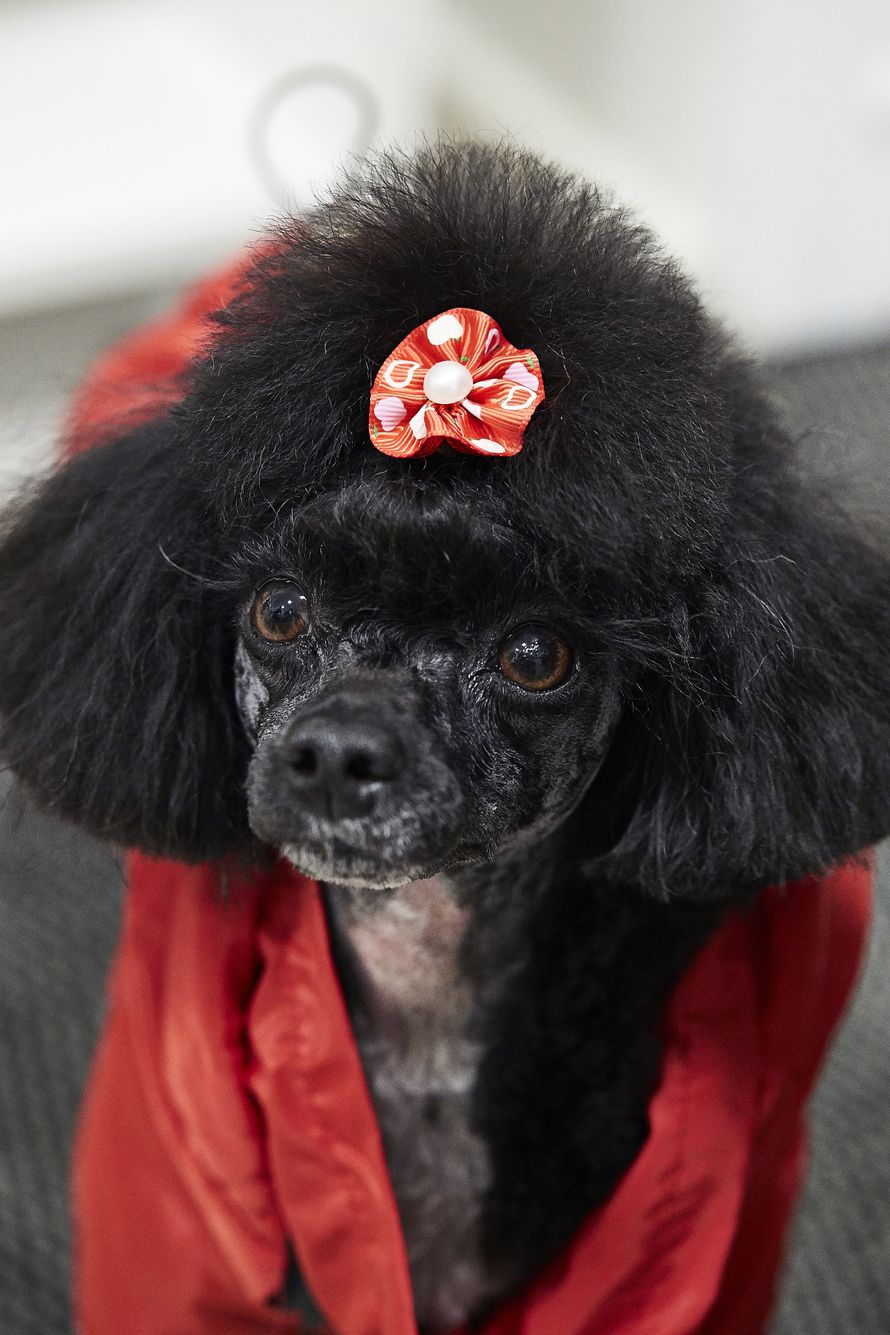 Suzy seisoo tottelevaisesti trimmauspöydällä ja antaa Sini Santaharjun heilutella saksien teriä pitkin turkkiaan. Se ei herpaannu asennostaan, vaikka Sinin villakoira Tilda houkuttelee sitä leikkimään. Trimmaus on Suzylle tuttua puuhaa, sillä se pääsee Sinin salonkiin Vantaan Tikkurilaan kuuden viikon välein kaunistautumaan.