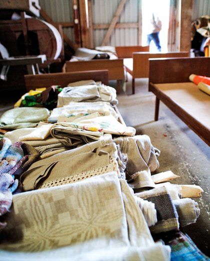 Tavaramäärä on pökerryttävä: sorvijalkasänkyjä, peilipiironki, arkkuja, kangaspuita, kuusitoista suurta puutiinua, röykkiöittäin pärekoreja, polkupyöriä, reki, parimetriset Karhun Erä-sukset, heinäseipäitä, pieniä koriste-esineitä – mitä nyt maalaistaloon sadassa vuodessa kertyy. Tila on ollut suvun hallussa 1890-luvulta lähtien, kertoo Suuri Maatilakirja.