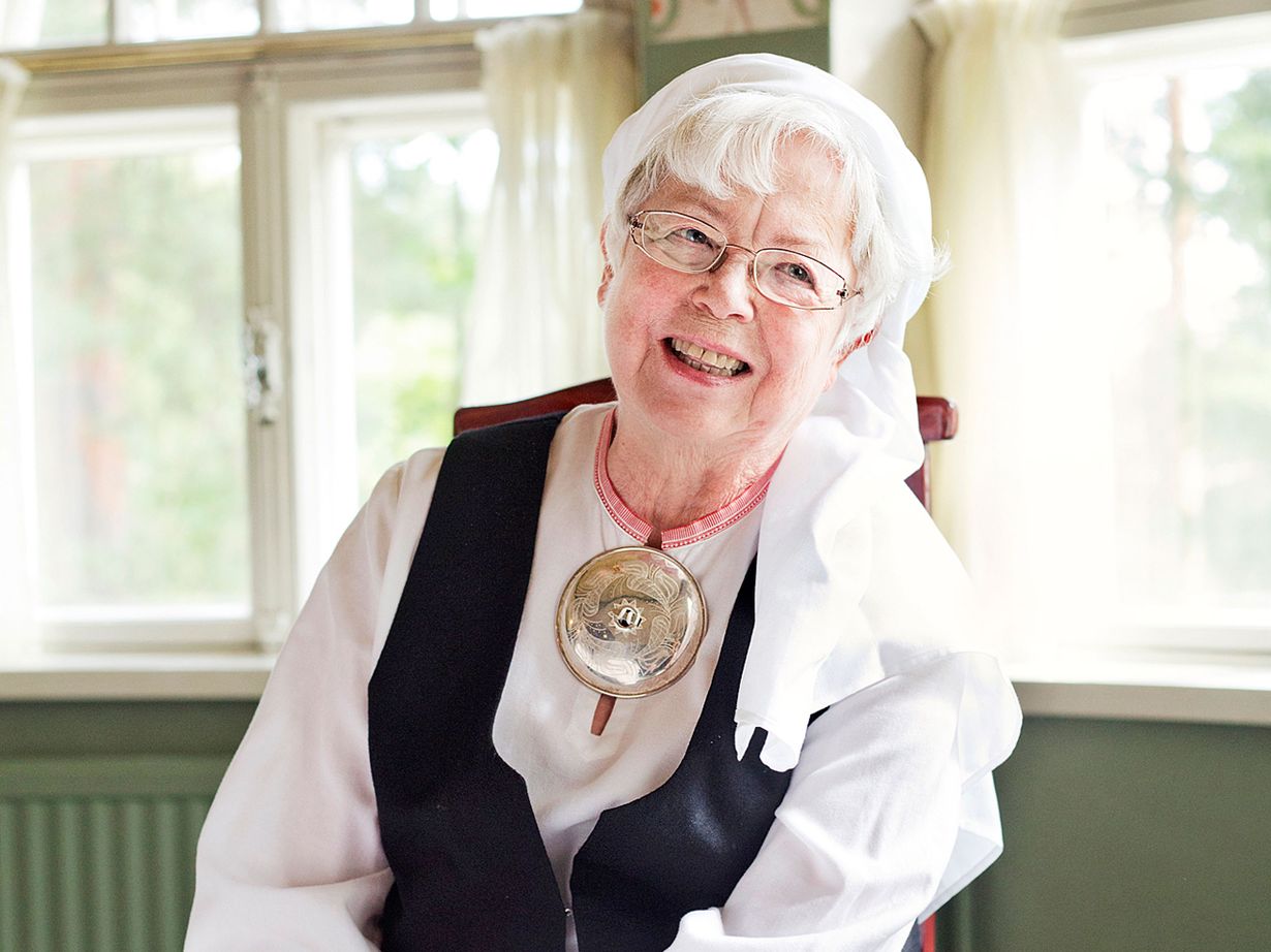 – Mie en ollut tottunut talkkunaan, ja se kyllä kieriskeli pienessä suussa. Ja juhlapäivällisillä piti ruokaliinat laitella sellaisiin hoppeisiin renkaisiin. Oli se aika outoa. Yksin mie viilettelin pihalla ja ympäristössä. Joskus sain läheisestä kaupasta kylmän nakkimakkaran.