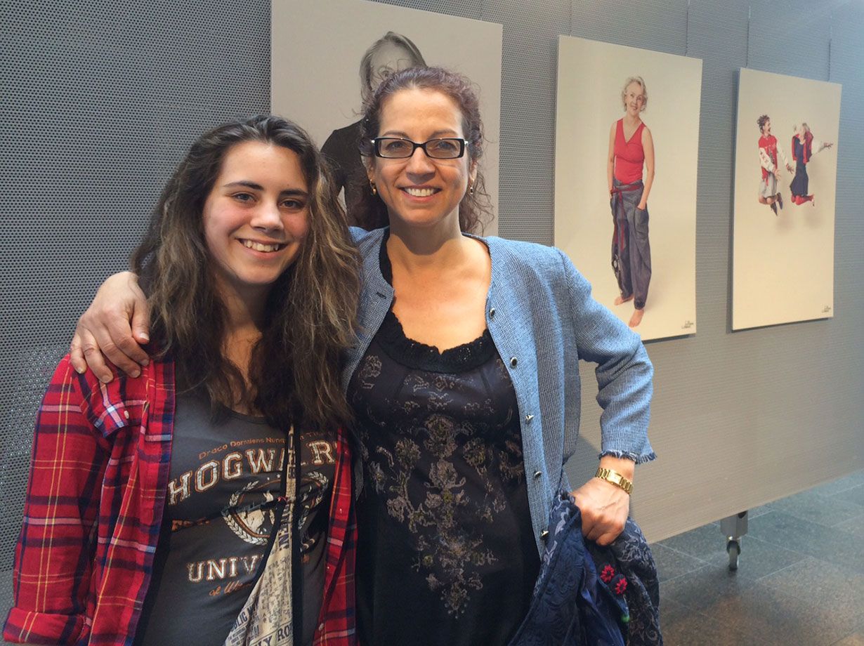 Riina Malhotra, 39, tutustui kuviin kummitätinsä Marja Tulokkaan, 60, kanssa. Luxemburgissa asuva Marja on itse asiassa yksi näyttelyn Ihanista naisista ja osui käymään Suomessa juuri näyttelyn avajaispäivänä. Riina oli muiden Marjan läheisten kanssa lahjoittamassa tälle Ihana nainen -päivän.