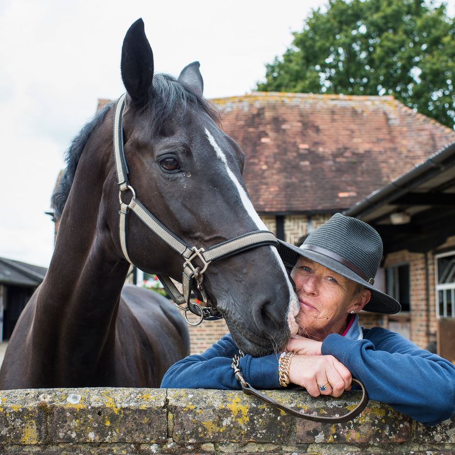 Kouluratsastaja ja valmentaja Kyra Kyrklund, 63, lupaa tulla meitä vastaan Billingshurstin juna-asemalle.