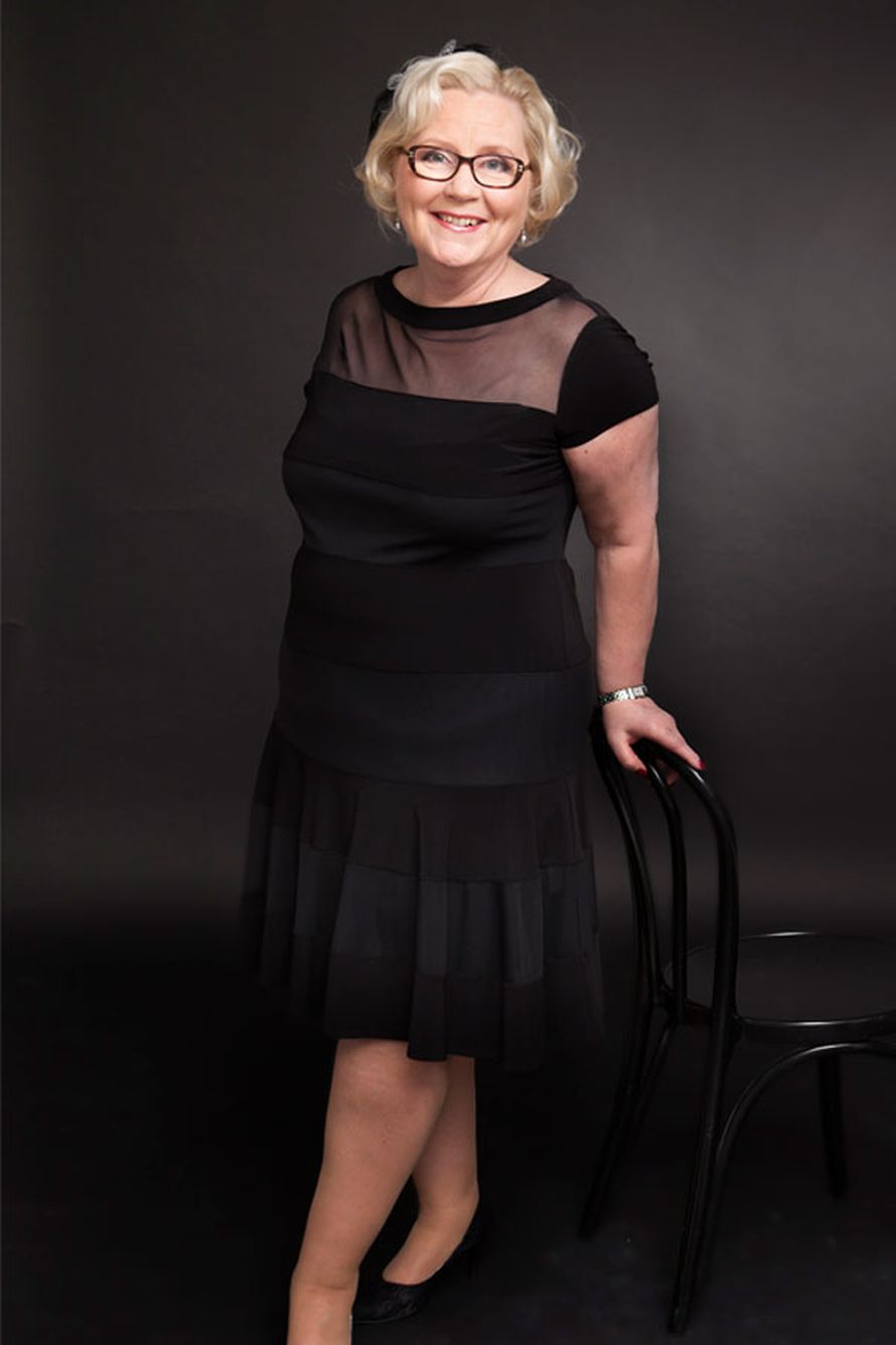 – Kuvaukseen mennessäni olin vähän hämmentynyt: minkä tyylisissä vaatteissa haluan tulla kuvatuksi? Otin mukaan 60-vuotishippamekkoni, halusin toiseen kuvaan jotain juhlavaa.