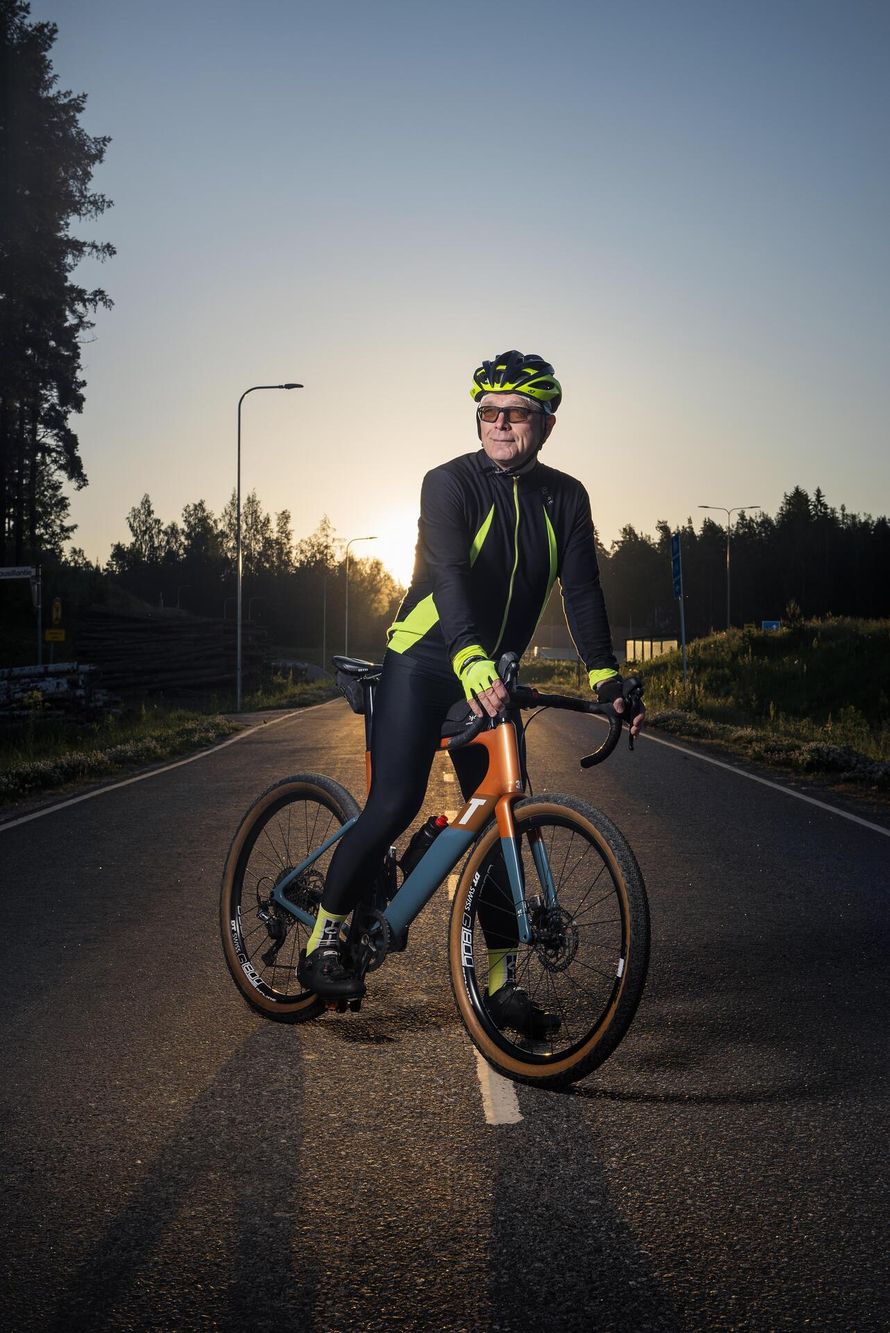 Matti Kiijärvi nauttii aamuvarhaisista lenkeistä pyörän selässä. "Hienointa on seurata luonnon heräämistä", hän sanoo.