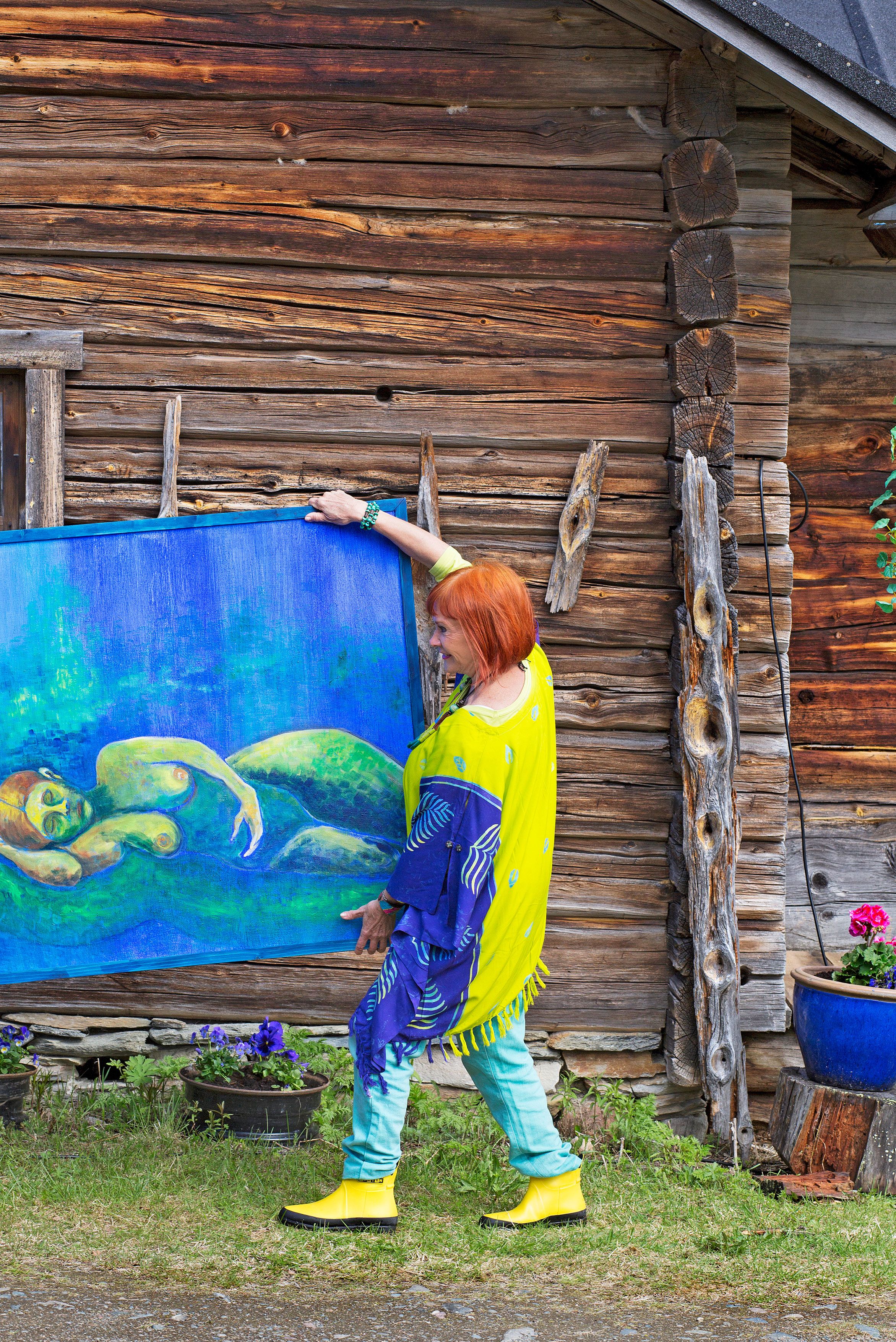– Pakkohan tämä on pystyttää! Täällä Kittilässä kun kiisteltiin vuosia Kalervo Palsan haudalle suunnitellusta muistomerkistä. Se muistutti silloisen kirkkoherran mielestä liikaa miehen sukupuolielintä. Siitä sain idean tähän, Milla nauraa ja kutsuu peremmälle. Hän on hieman huolissaan, riittääkö ilta jutuntekoon.