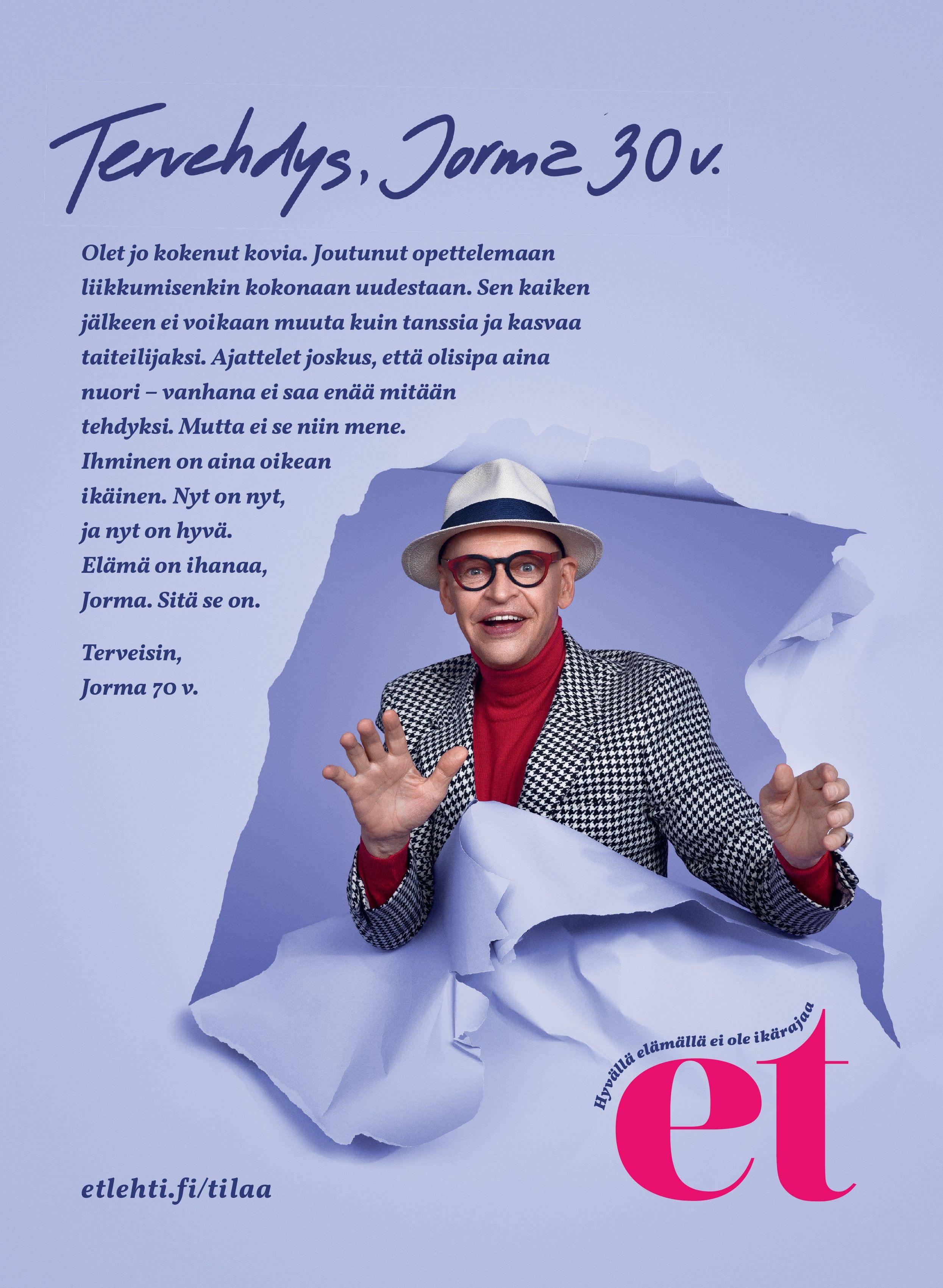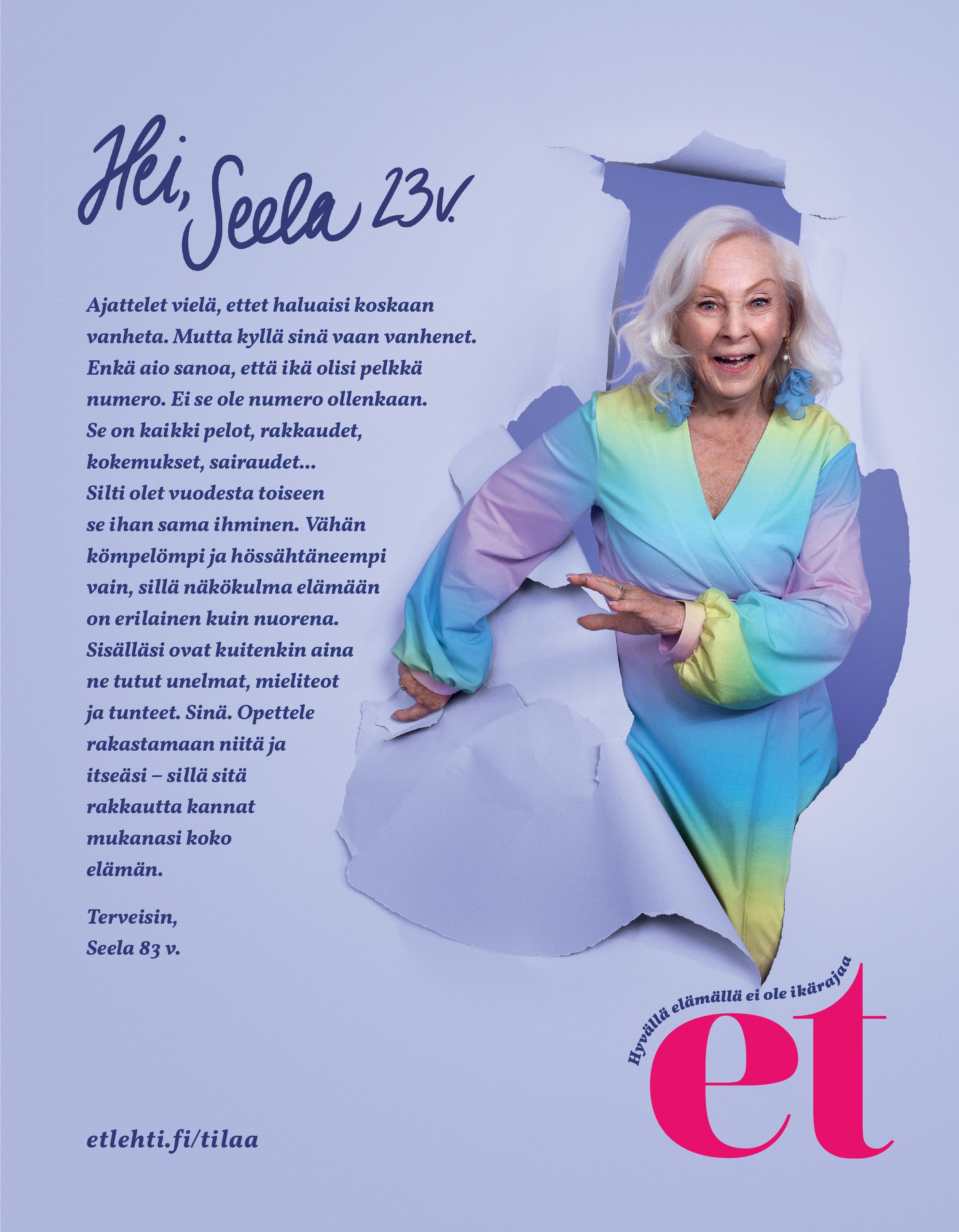 ET-lehden uusi kampanja kannustaa pohtimaan, miten elämänkokemus vaikuttaa siihen, miten maailman koemme ja miten siihen reagoimme. Millaisen neuvon antaisit nuorelle itsellesi kaiken nykyisen tietämyksesi valossa?