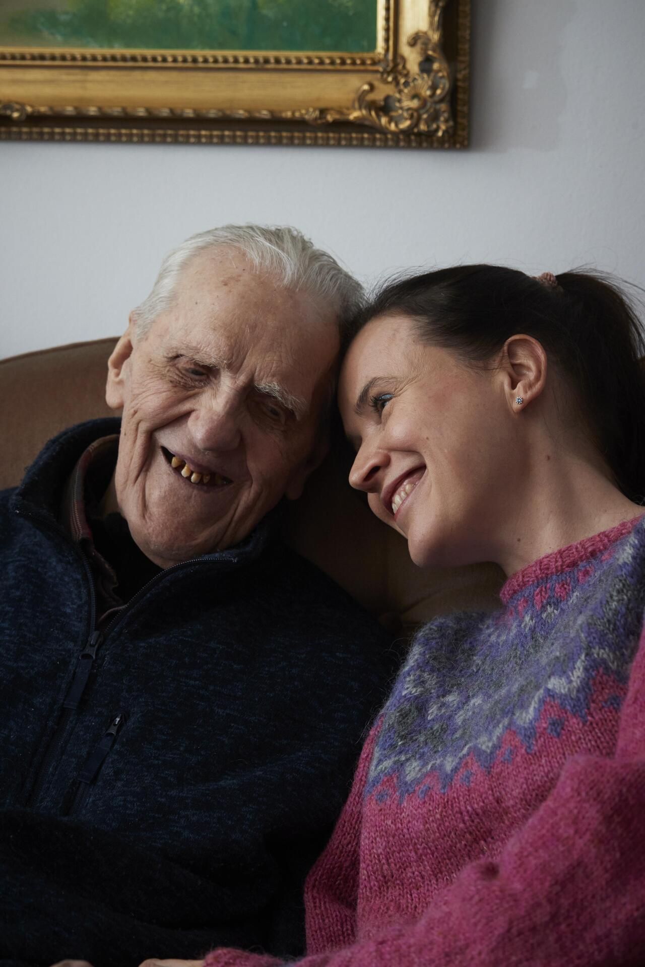 Mamma ja vaari kutittelivat toisiaan, nauroivat yhdessä, kävelivät käsi kädessä.