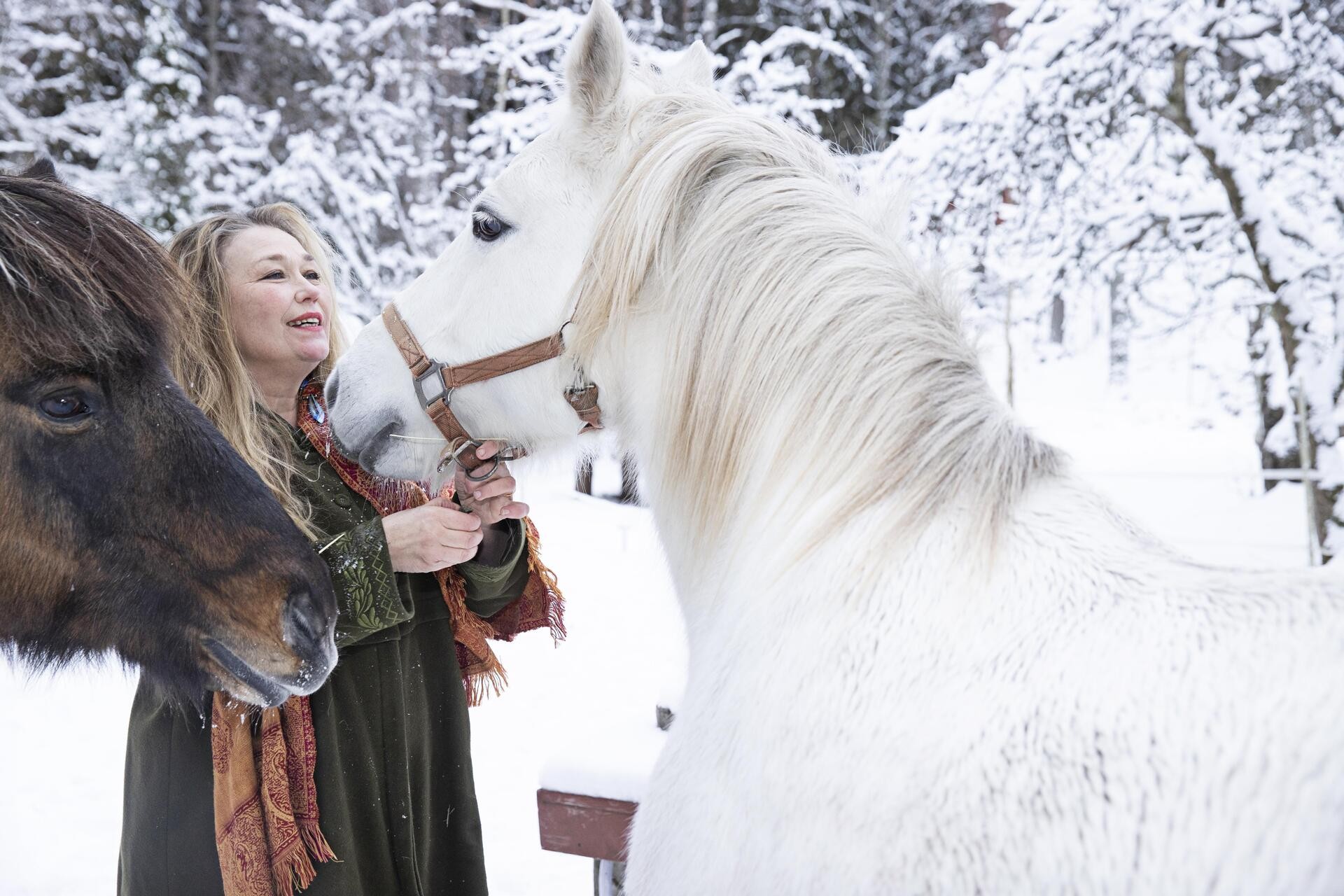 Minulla on kissa, kaksi koiraa ja kaksi hevosta, mutta olen aina elänyt enemmän koirien ja hevosten kanssa. Teen hevosteni kanssa tunnevalmennusta asiakkaille. Hevoset auttavat poistamaan stressiä ja tunneperäisiä traumoja. Koiratkin ovat joskus mukana työnohjauksessa ja kursseillani. Aion kirjata hoitotestamenttiini, että haluan aina elää koiran kanssa.