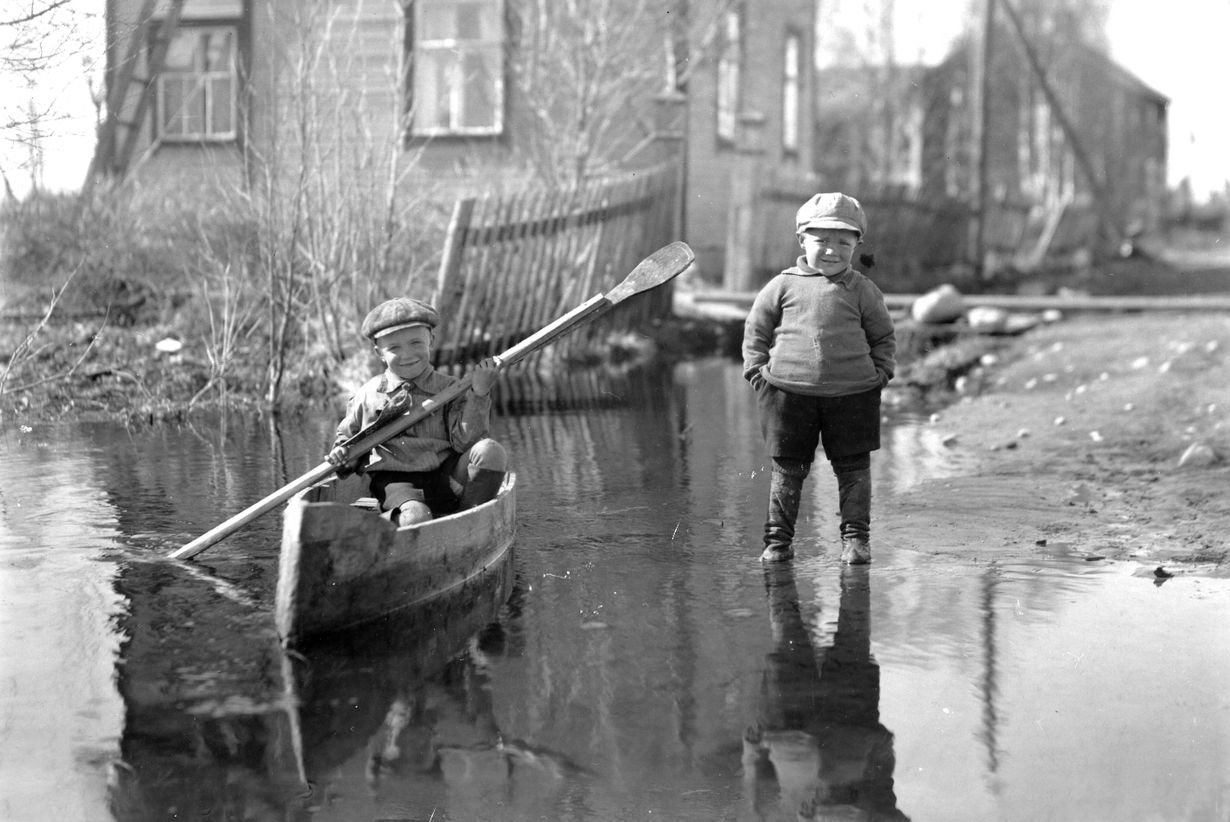 Lähdin Oravan Karin kanssa matkaan. Uudenkarhea vene oli kiikkerä mutta ei vuotanut, ja meloimme aika pitkälle. Mutta takaisin tullessa vene keikahti nurin niskoin ihan rannassa! Noloa, mutta onneksi kukaan ei ollut näkemässä. Karia harmitti erityisen karvaasti se, että joen pohjaan upposi hänen viimeisen päälle hyvä haukiuistimensa.”