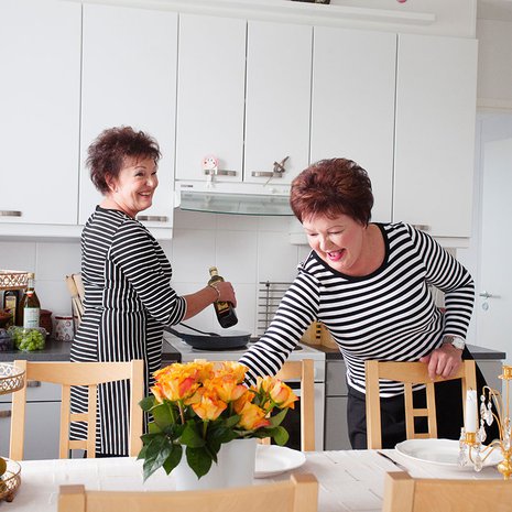 – Aivan sama juttu, ja näin on ollut koko elämämme ajan, sanoo. Arkeen mahtuu paljon hauskoja sattumuksia. Toiselle soittaessa ajatukset menevät usein niin yksiin, että puhelin tuuttaa varattua. Kun Leena kertoo aluksi, että teinpä tuossa juuri karjalanpaistia, Leea vastaa: