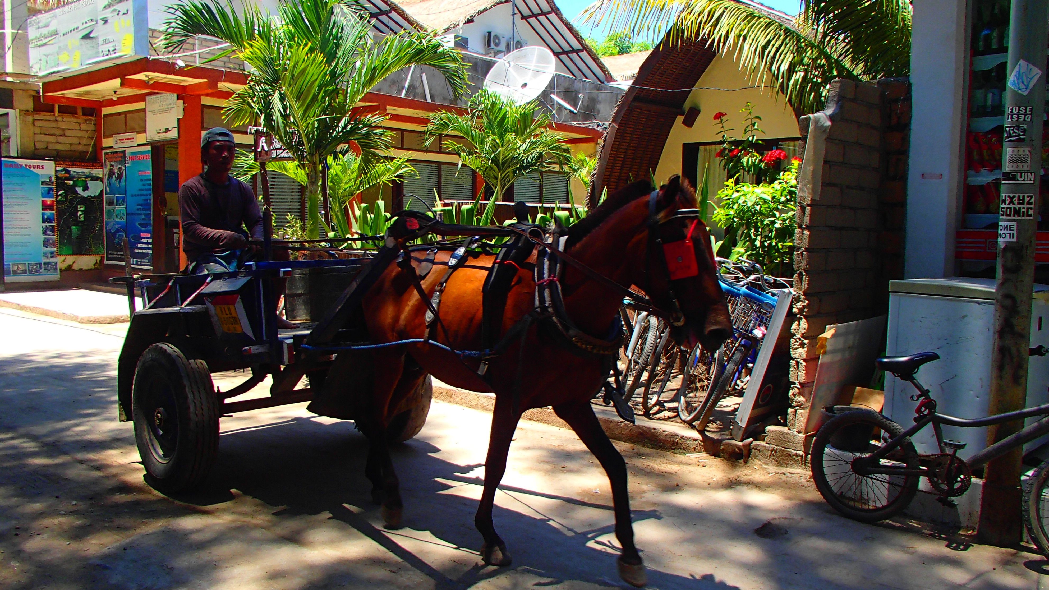 Gili-saarten ajoneuvot ovat yksihevosvoimaisia. Hevoskärryjen lisäksi sallittuja kulkupelejä ovat polkupyörät ja sähkömopot.