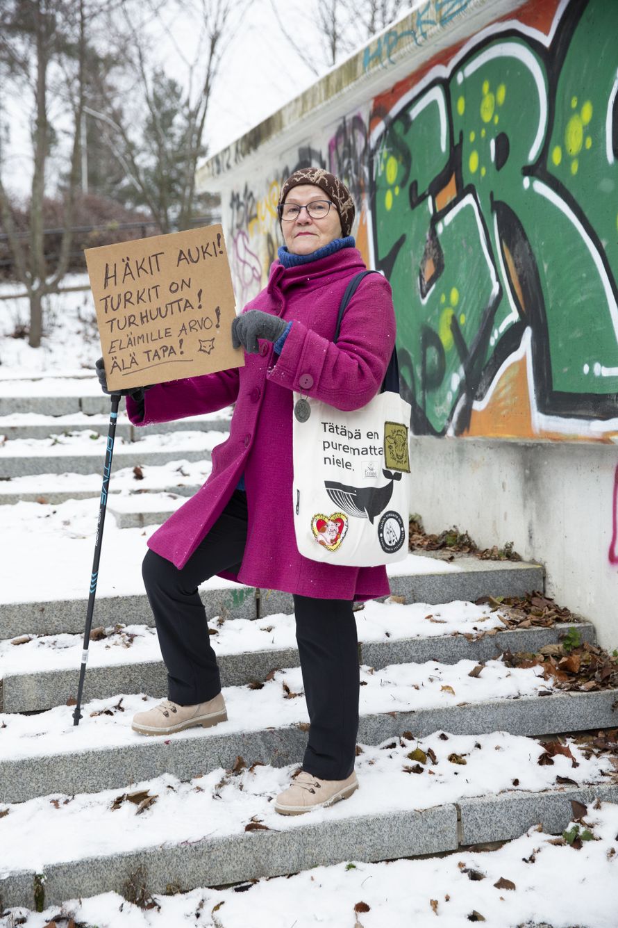 Raija, 74, osoittaa mieltä eläinten puolesta: ”Kutsun itseäni anarkistimuoriksi”