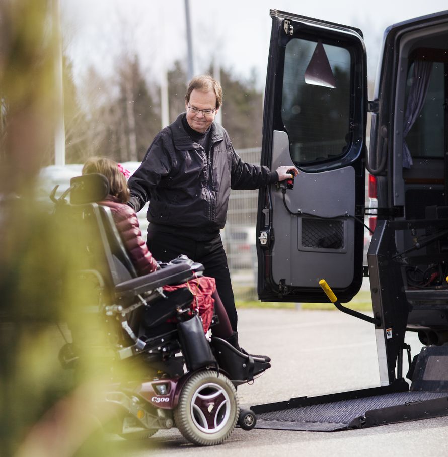 Työni paras ja palkitsevin puoli on, että voin auttaa ihmisiä liikkumaan paikasta toiseen. Siitä tulee hyvä mieli. Asiakkaani ovat pääasiassa vanhuksia ja vammaisia, ja ikähaitari on yhdestä sataan. Haen monet heistä kotoa ja vien sinne takaisin.