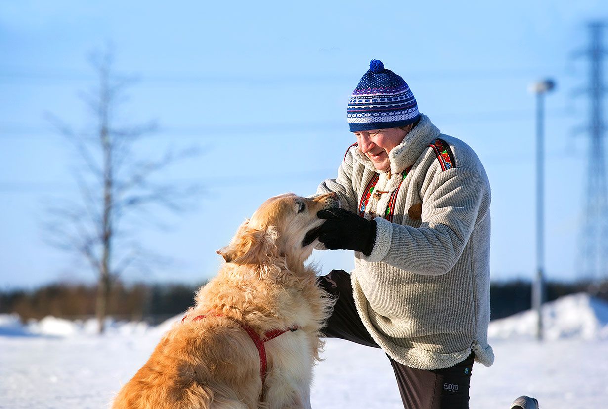 – Juttu lähtee oikeaan suuntaan, kun on yhteisiä kiinnostuksen kohteita. Olen kova puhumaan ja näytän usein kännykästä koirani ja mökkini kuvia.