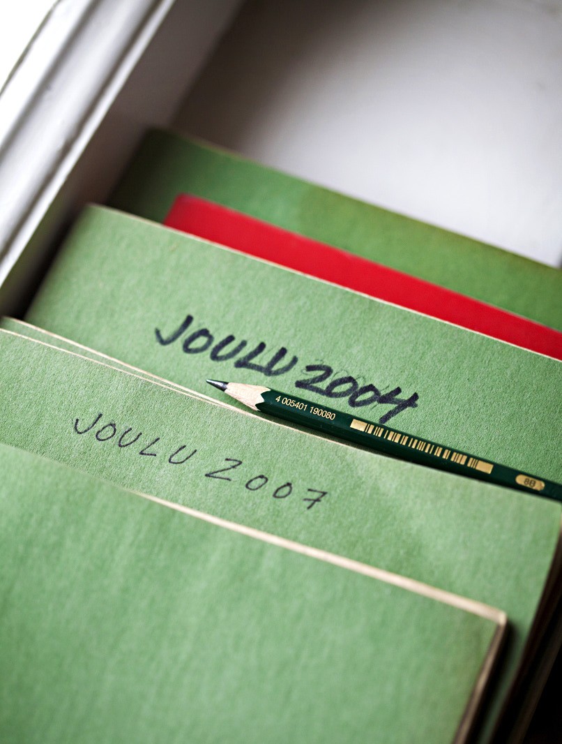 – Jo lokakuussa kaivan esille vihkoni. Soittelen joululevyjä, istuudun nojatuoliin ja ryhdyn laatimaan tehtävälistoja. Numeroin ihan pieniä tehtäviä, jokaisen keittiön laatikonkin erikseen – on nimittäin nautinnollista yliviivata tehty työ! Hyvissä ajoin aloitetun siivouksen juju on se, että välillä voi laiskotellakin. Rakastan vihkojani, ja saatan pulata ja fiilistellä niiden parissa pitkään.