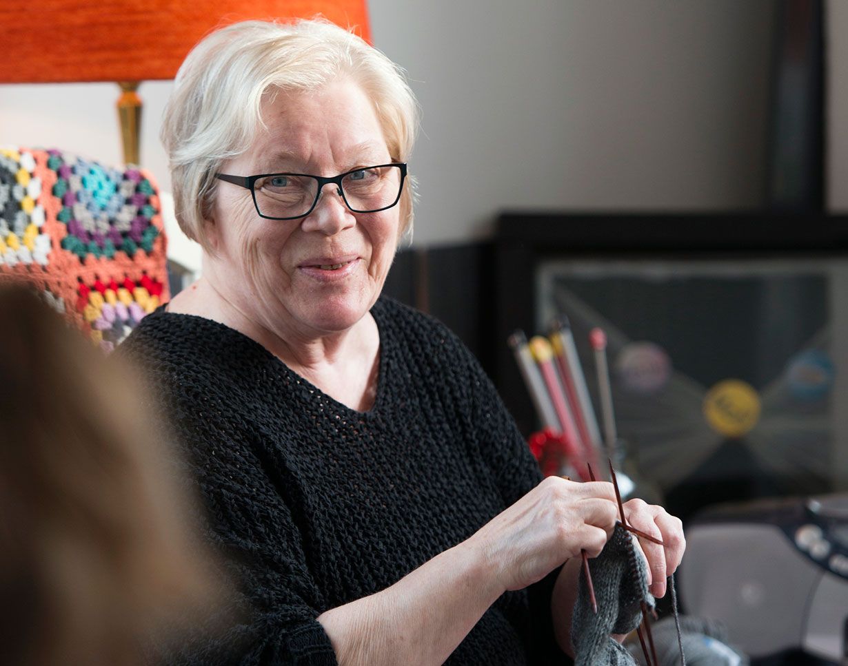 – Olen aina kutonut liikaa. Kysyin, mihin voisin viedä sukkia ja lapasia, joita teen, ja päädyin tänne.