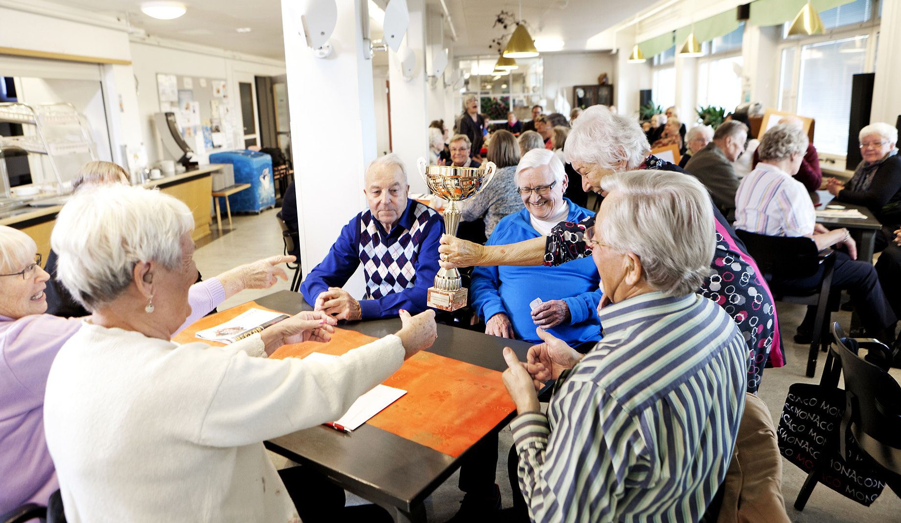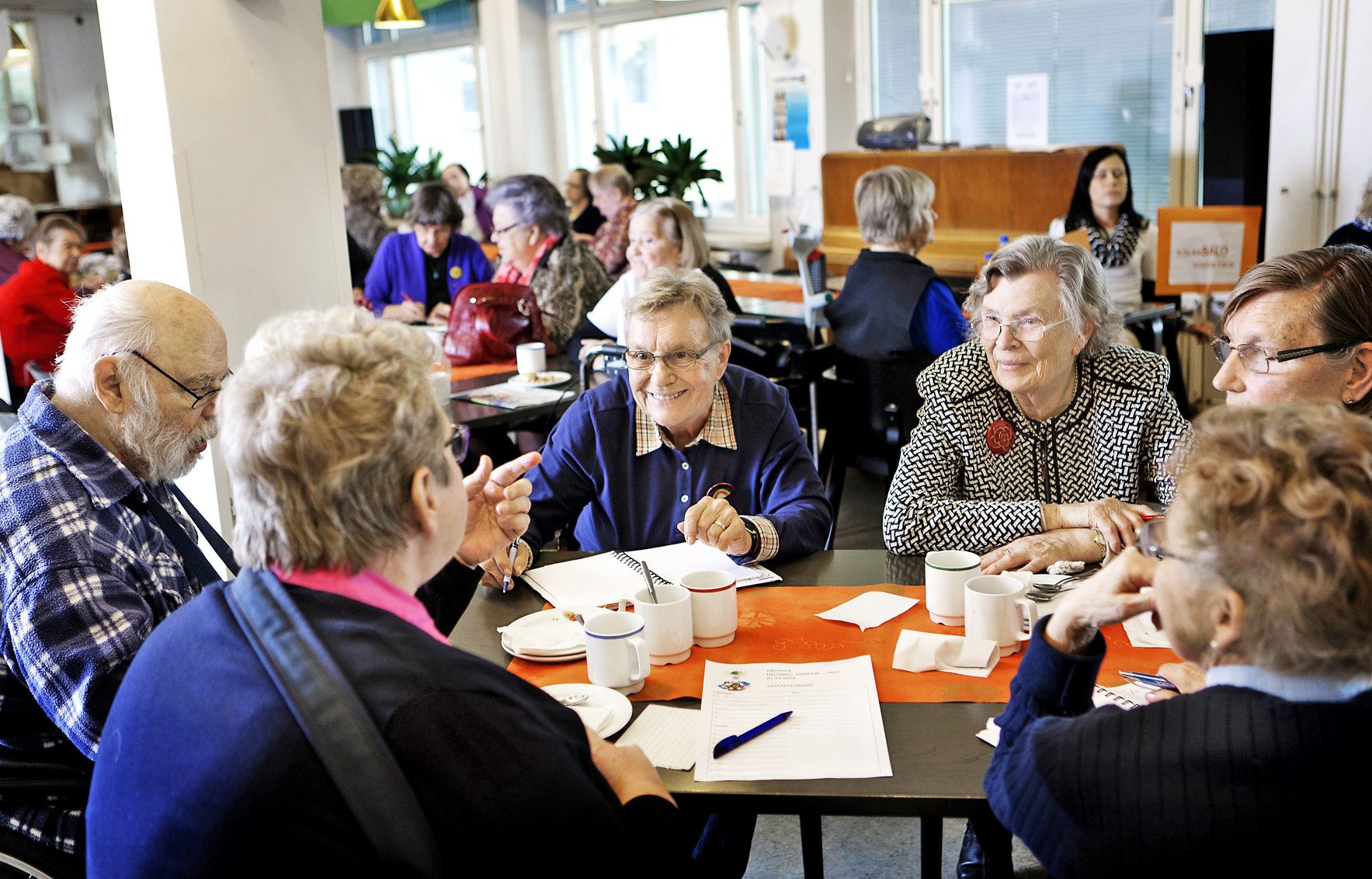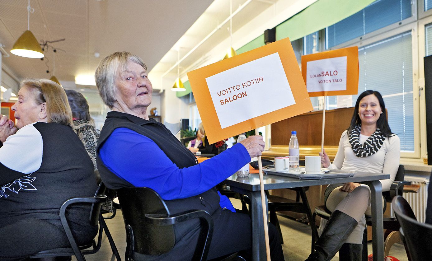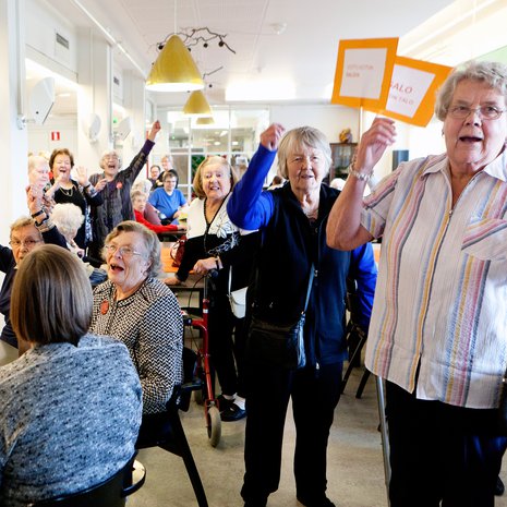 Lokakuisena tiistaina Käpyrinteen palvelutalossa Helsingissä on urheilujuhlan tuntua. Kahvia keitellään, videotykkiä viritellään ja vieraita odotellaan. Kohta nimittäin alkaa visailun maakuntaottelu Helsinki–Salo–Tampere.