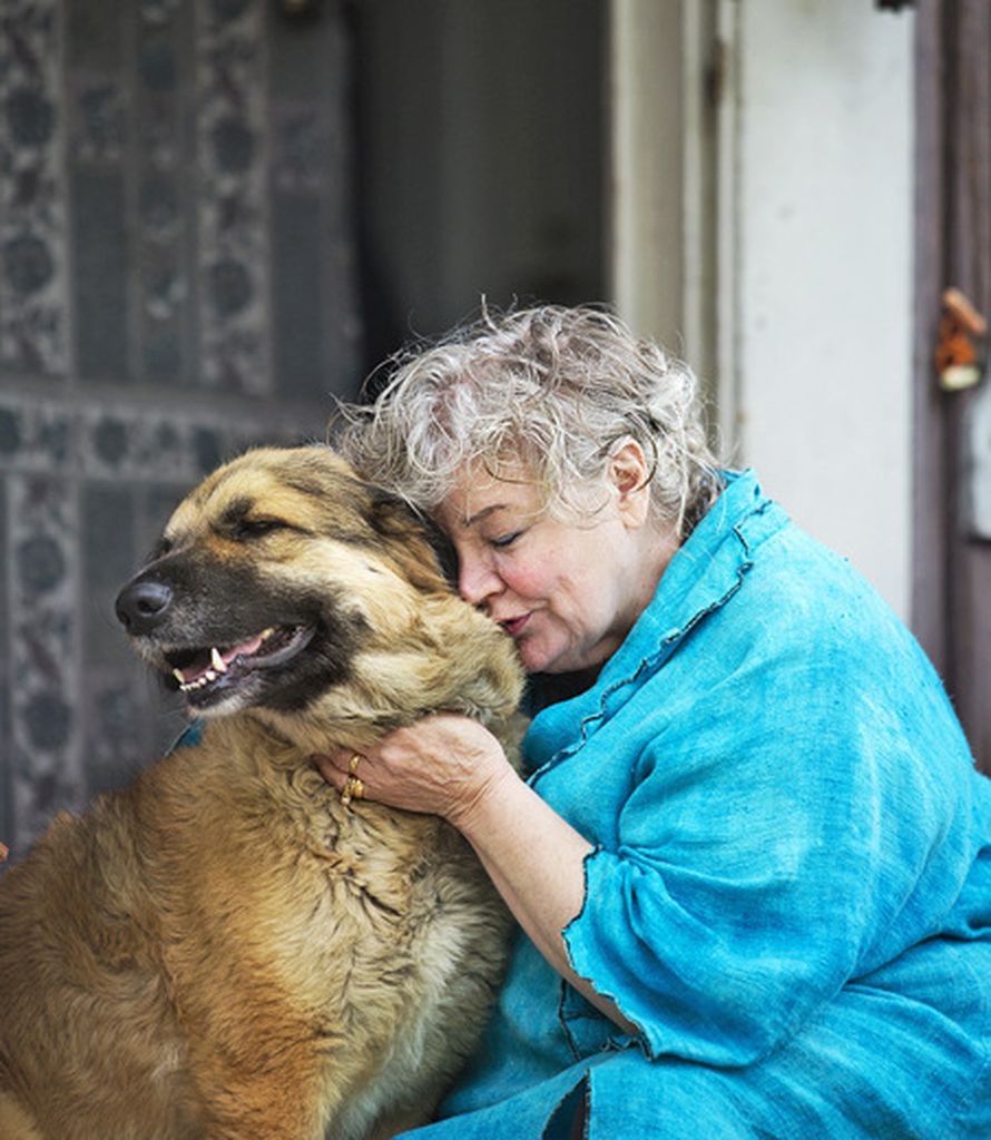 – Konkreettisimman surutyöni olen tehnyt kotona, ollut hiljaa ja käpertynyt lasten kanssa läjään, Irja Jutunen kertoo. Kuvassa hänellä on Matleenan vanha Rontti-koira.