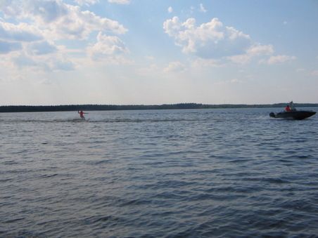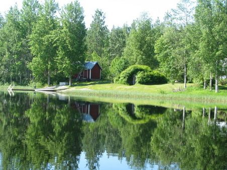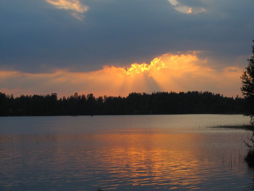 Sisko Hokkanen kuvaa taitavasti mökkijärven ilta-aurinkoa.