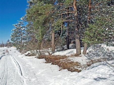 Aurinko on sulattanut lämpimän, etelään päin olevan metsänreunan.