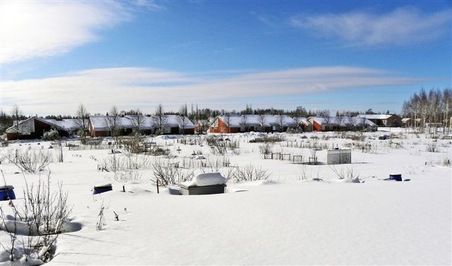 Kuvia taloyhtiöstä, jossa asun. Vieressä näkyy alue, josta kaupunki vuokraa palstoja kaupunkilaisille, jotka tykkäävät myllätä multaa ja kasvattaa kaikenlaista.