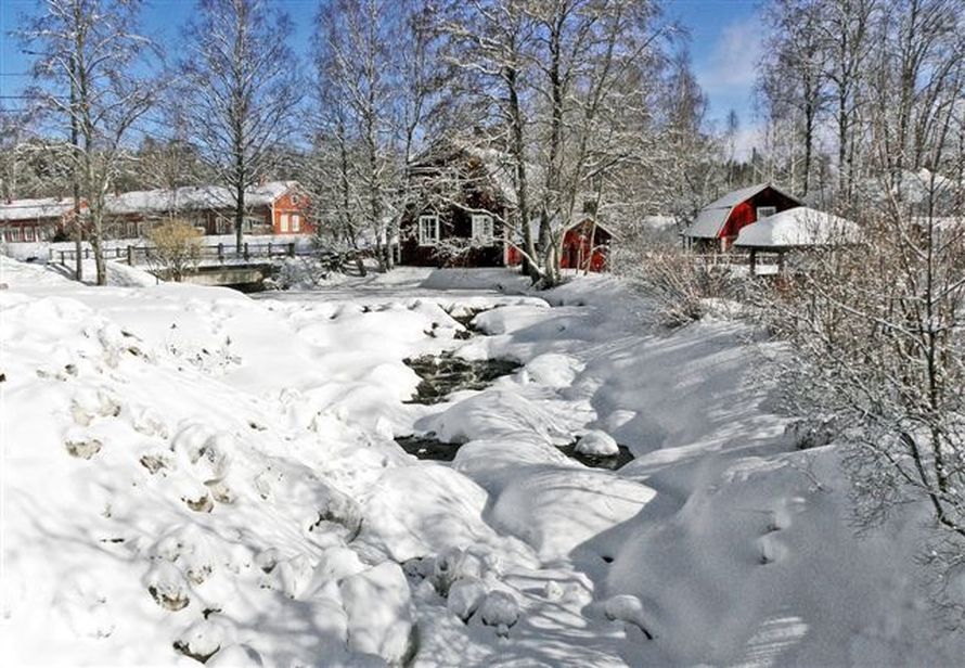 Sunnuntaina 30.3. oli valtavan kaunis ilma, joten ei muuta kuin kameraa ulkoiluttamaan. Kummasakin kuvassa näkyvät kosket, joissa on pienehkö säännöstelypato. Ne eivät juurikaan näy kuvissa sulan maan aikana.