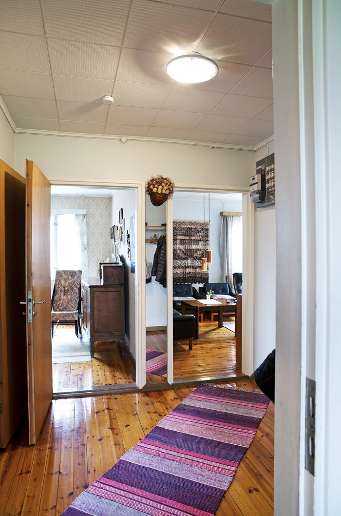 Nyt alakerta on enää viilausta vailla. Lautalattia on kuorittu esiin muovimattojen alta, värittömät seinät ovat saaneet 1950-lukua henkivät tapetit. Pari haluaa vaalia perinteitä, mikä ohjaa myös materiaalivalintoja. Kaiken pitää olla esteettisesti sopusoinnussa vanhan kanssa.