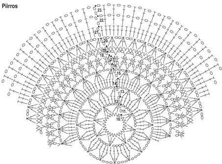 10. krs: (ks. piirros) 1 kjs, virkkaa 1 ks jokaiseen s:aan = 24 ks. Virkkaa vielä kerrokset 11–22 ja toista sitten piirroksen 23. krs