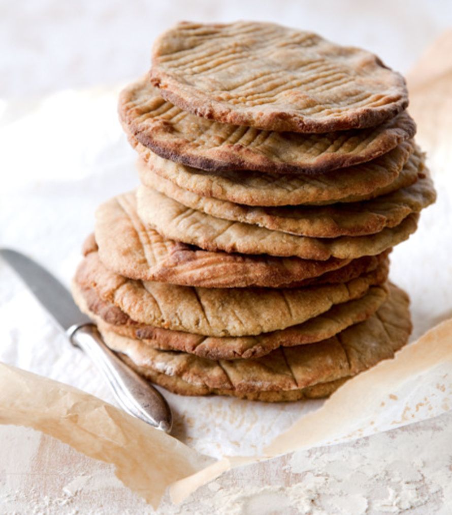 - Sekoita taikina hyvin ja muotoile jauhotetulla alustalla isoja tai pieniä rieskoja. Voit kuvioida rieskojen pinnat haarukalla tai tehdä niihin ristikon veitsellä.