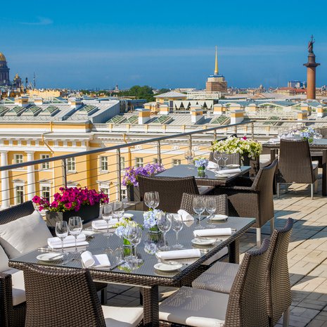 7. Moskva Laadukas ja kotoisa näköalaravintola Nevski Center -tavaratalon katolla, Stockmannin tavaratalon yläpuolella. Monipuolinen fuusiomenyy syntyy avokeittiössä. Keitto alkaen 8 €, sushit 3 €, liharuoat 15 €. Lapsille leikkinurkkaus ja hoitaja. Nevski prospekt 114–116. Metro: Ploštšad Vosstanija.
