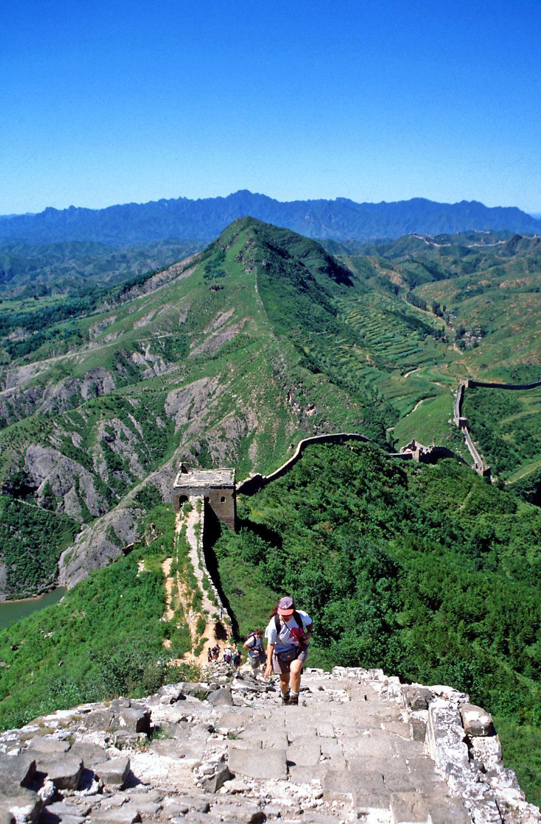 Taivaan portailla tuuli ujeltaa, kun katsomme korkealta huimia maisemia. Muuri kiemurtelee kaukaisuuteen jylhiä kukkuloita pitkin. Etäällä, 120 kilometrin päässä, häämöttävät Pekingin tornitalot.
