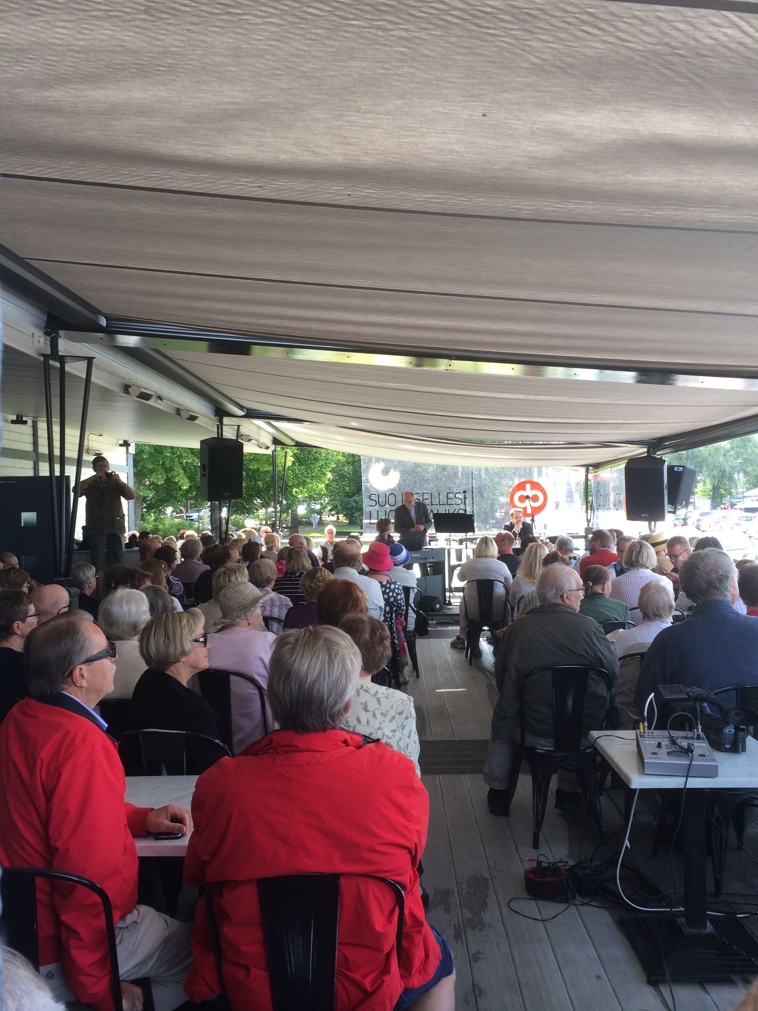 Tämän jälkeen laulaa oopperajuhlilla esiintyvä taiteilija, jota myös haastatellaan. Tilaisuus myös päättyy lauluun. Tilaisuuden juontaa oopperajuhlien PR-päällikkö Aarno Cronvall, joka myös haastattelee vieraita. Kesällä 2015 olin siellä kuuntelemassa, kun oopperalaulaja Matti Turunen esiintyi ja näyttelijä Nicke Lignell kertoi työstään.