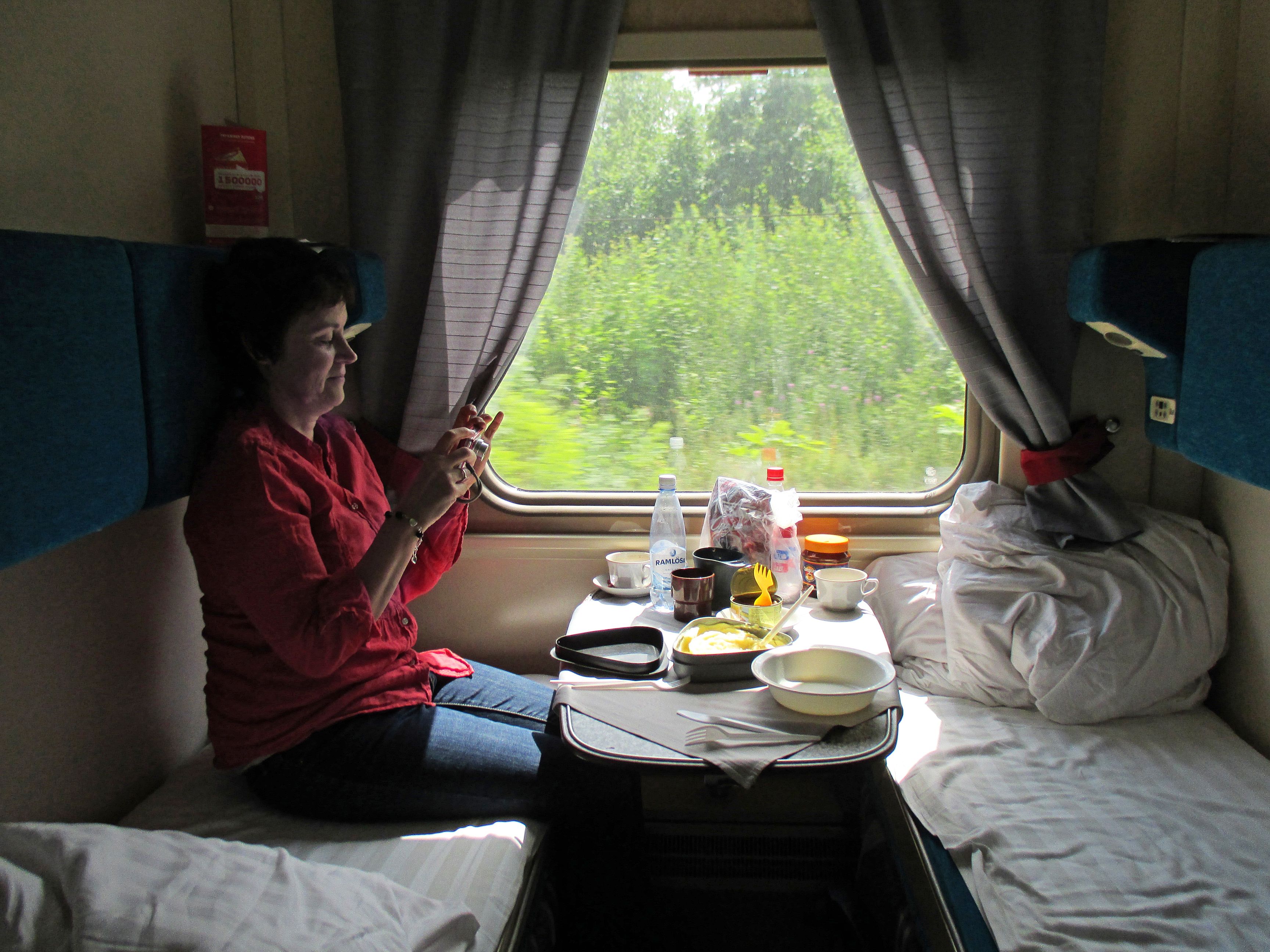 – Katselin paljon ulos ikkunasta ja mietin maailman suuruutta. Samalla tuntui ihmeelliseltä, miten pieniin tiloihin olimme sopeutuneet päiväkausiksi ja miten hyvin viihdyimme. Pisin junamatka kesti yli 60 tuntia. Onneksi ruoka sisältyi tämän junavälin hytin hintaan. Välillä oli ihan nipisteltävä itseään, että uskoin meidän todellakin olevan Siperiassa, Elisabet kertoo.
